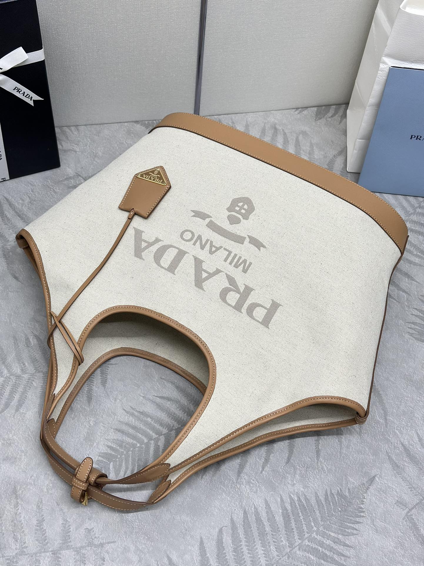プラダ「Prada」リネンブレンド ラージトートバッグ