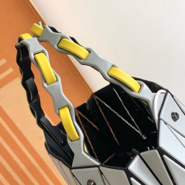 限定カラーのベジタブルバスケットシリーズは、三宅一生の特徴的な幾何学デザインを施したPVC製バッグ。軽量なポリ塩化ビニル素材を使用し、光沢感のあるメタリック調と鮮やかなカラーリングが季節感を演出。サイズは縦25x横30xマチ15cmで、買い物や日常使いに最適な大容量を実現13。調整可能なショルダーストラップ(長さ50-90cm)で、ハンドバッグやショルダーバッグとして多様なスタイルに対応。シーズンごとにリリースされる限定色がコレクターズアイテムとしても人気。