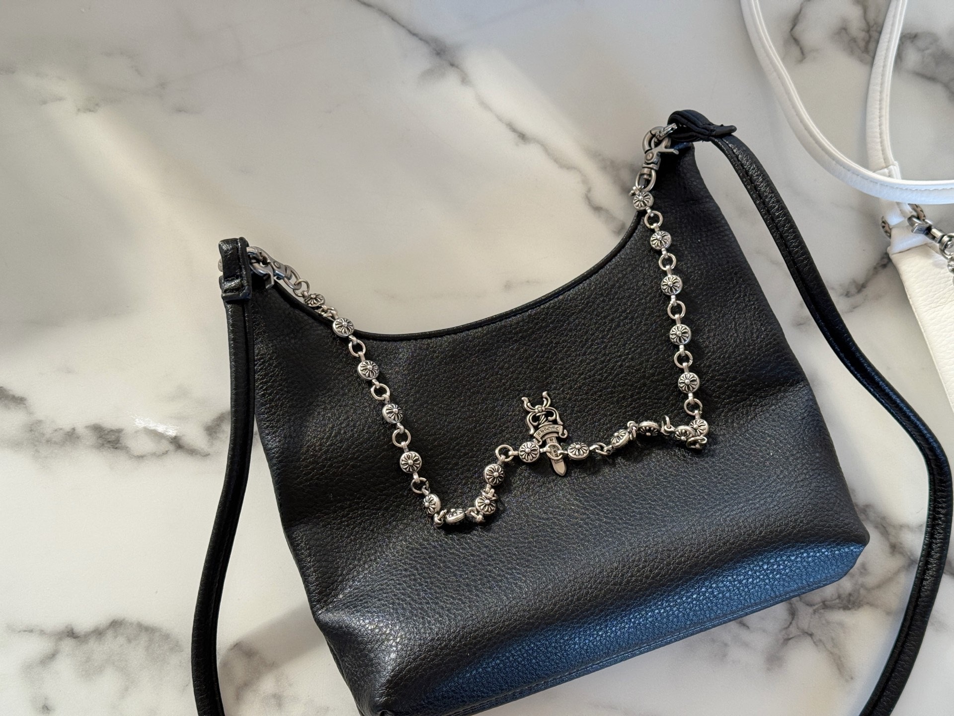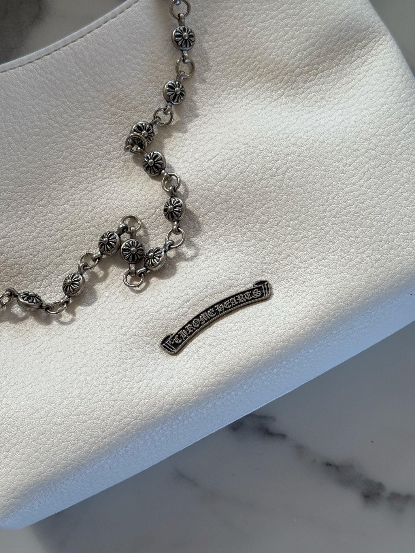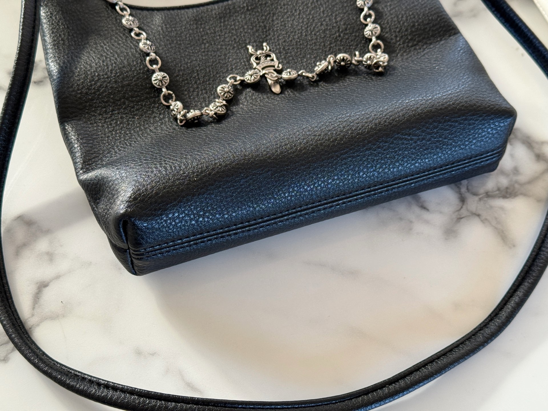クロムハーツのエッセンシャルなデザインを凝縮したコンパクトトートバッグ。20x15cmの使いやすいサイズながら、ブランドならではの高級感あふれる素材と仕上げ。シンプルで洗練されたシルエットが、男女を問わず様々なスタイルに自然に溶け込みます。日常使いに最適な機能美を追求した一品です。