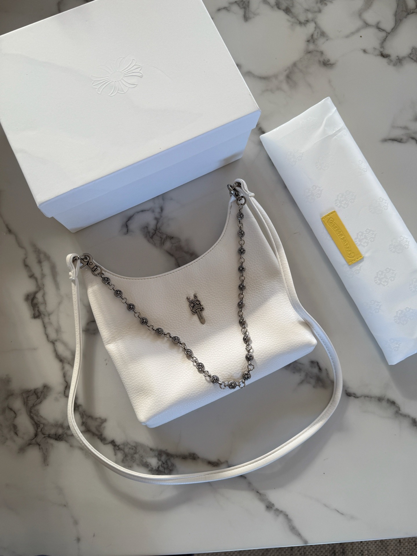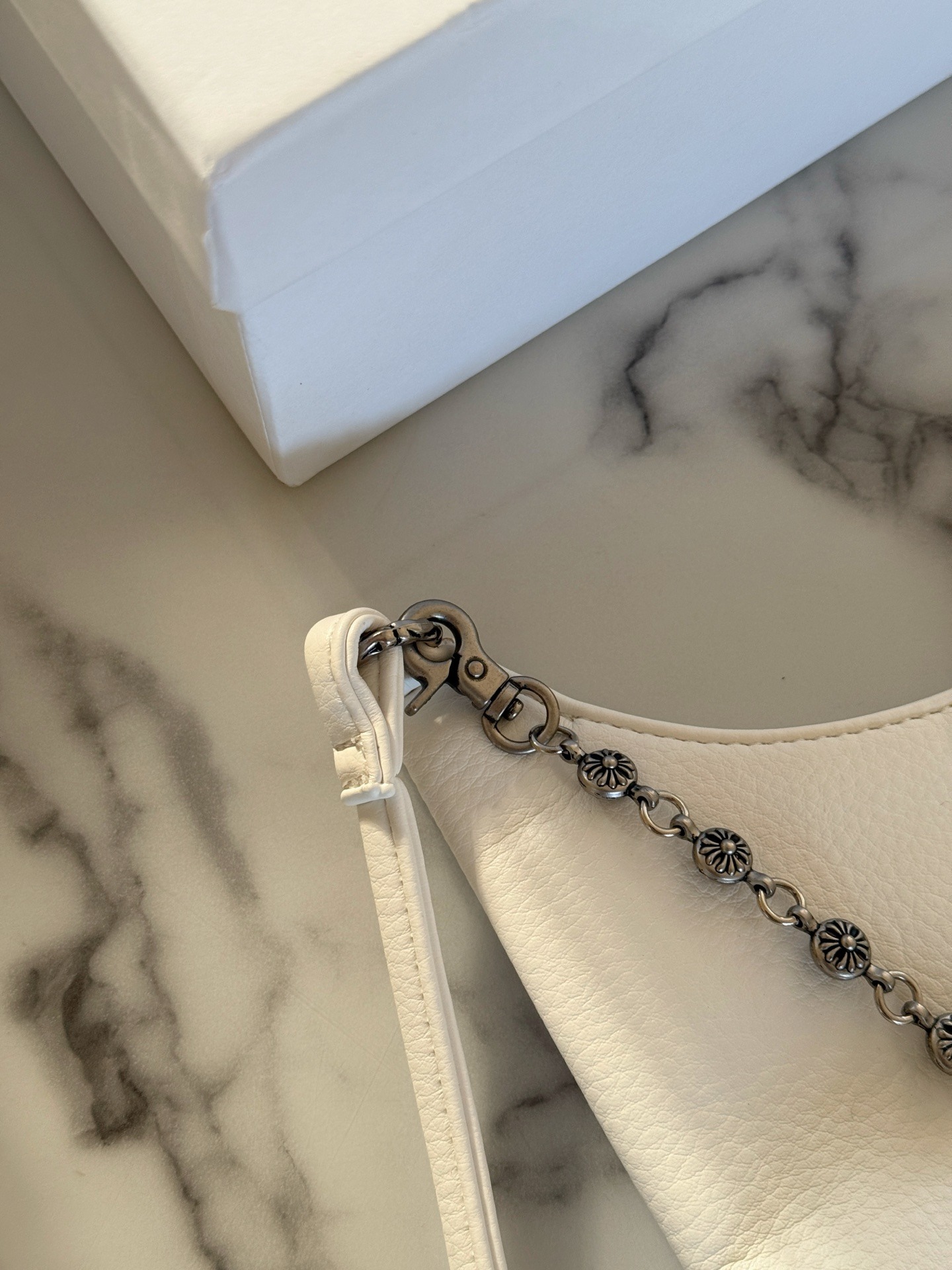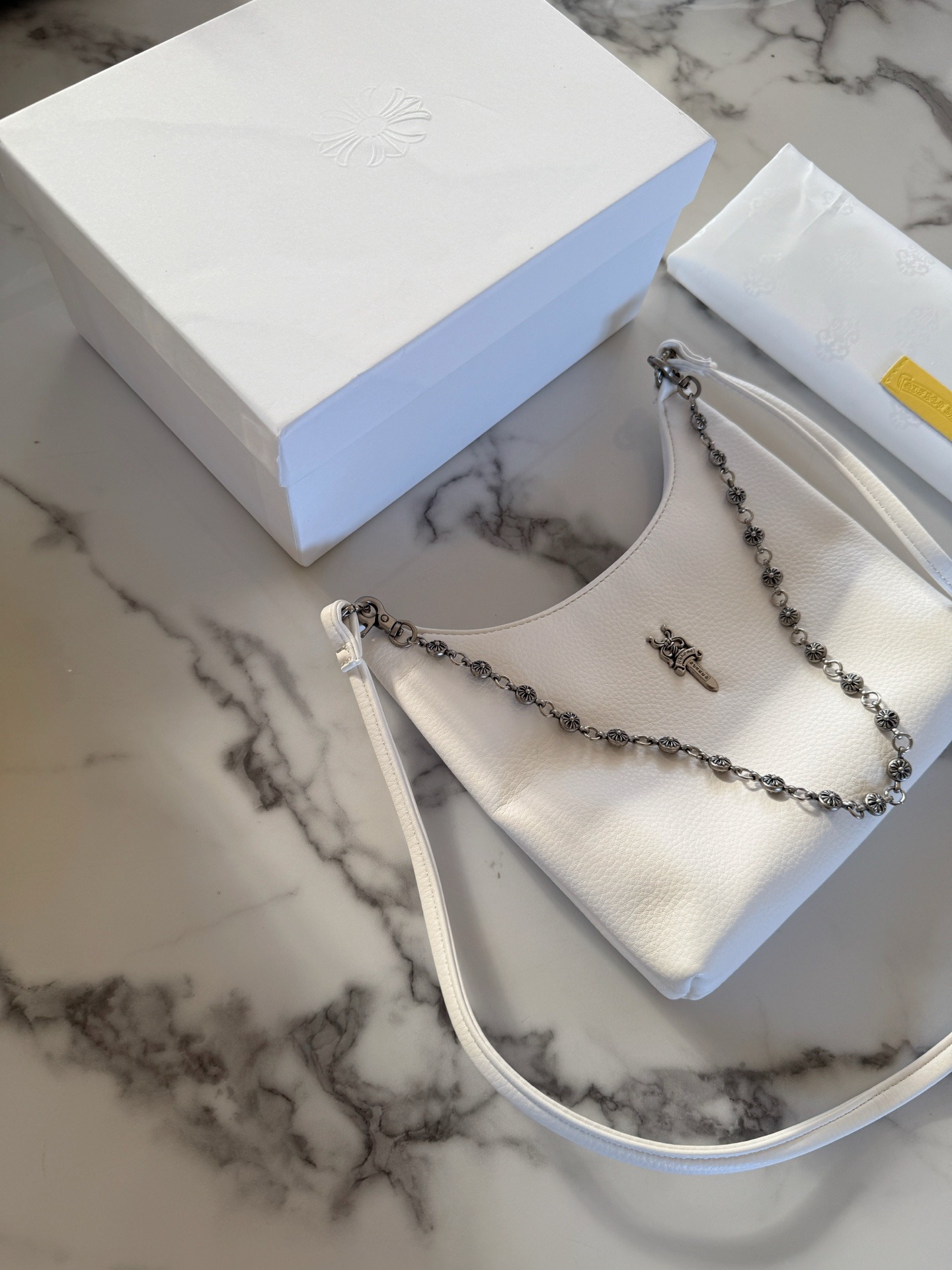 クロムハーツのエッセンシャルなデザインを凝縮したコンパクトトートバッグ。20x15cmの使いやすいサイズながら、ブランドならではの高級感あふれる素材と仕上げ。シンプルで洗練されたシルエットが、男女を問わず様々なスタイルに自然に溶け込みます。日常使いに最適な機能美を追求した一品です。