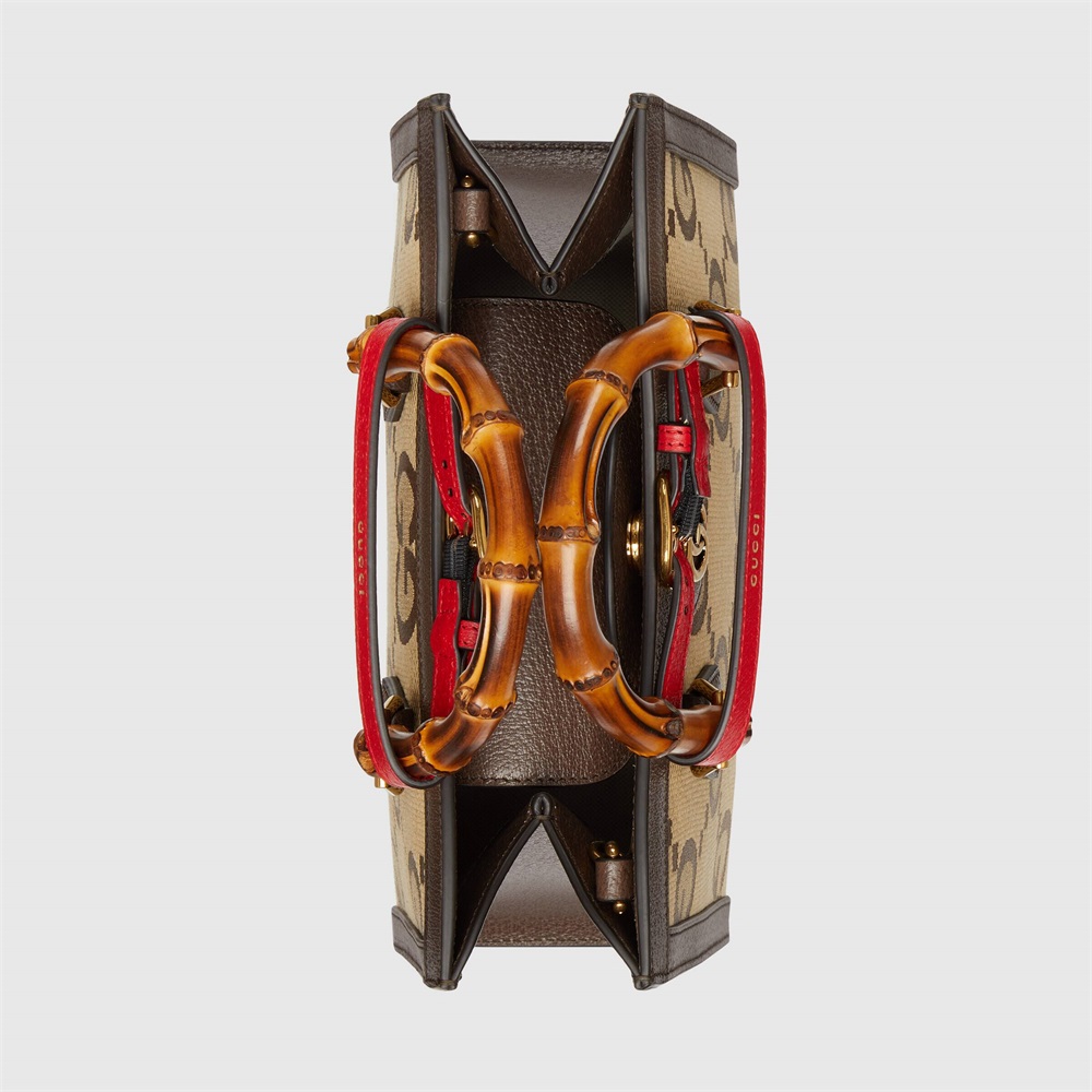 ひと目でグッチと分かる象徴的なロゴが、デザインに新鮮さと意外性をもたらします。伝統と価値に裏打ちされたグッチのロゴは、何度でも繰り返して身に着けられるタイムレスな製品のシンボルです。絶え間なく変化と実験を繰り返すというグッチのコンセプトに基づき、コレクションごとにさまざまなバージョンのロゴが披露されてきました。歴史あるモチーフにマキシマリスト的な解釈を加えた新しいジャンボ GGパターンが、Aria コレクションのウェアとアクセサリーのラインナップを彩ります。この〔グッチ ダイアナ〕スモール トートバッグは、ブラウン レザーのトリムで仕上げました。