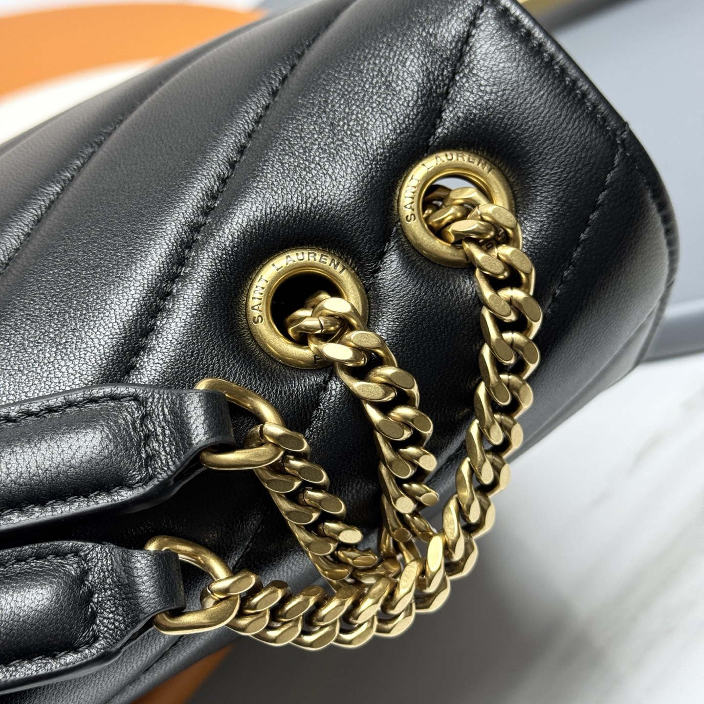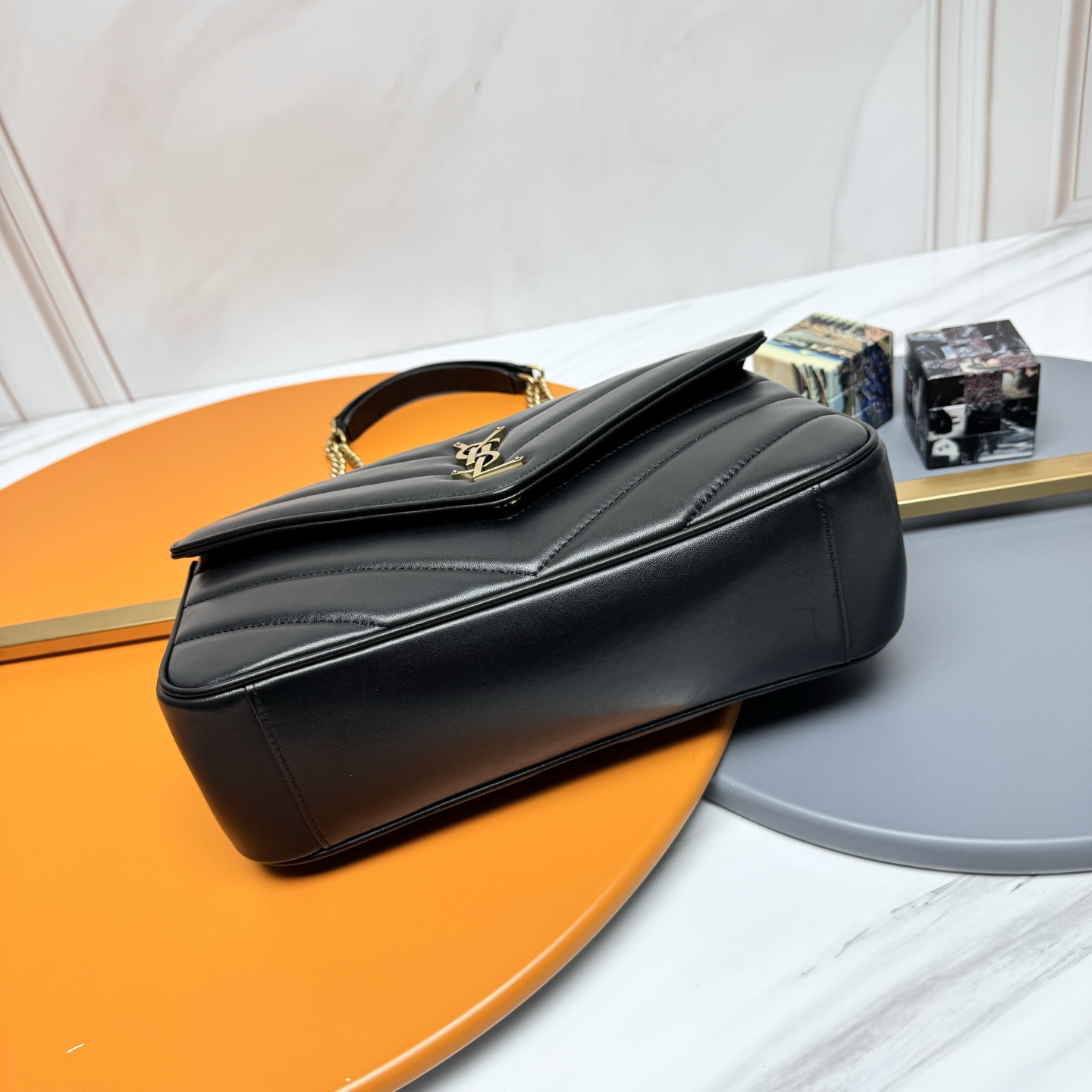 ゴールドトーンのYSLロゴが、クラシックとモダンな雰囲気を絶妙に融合。
