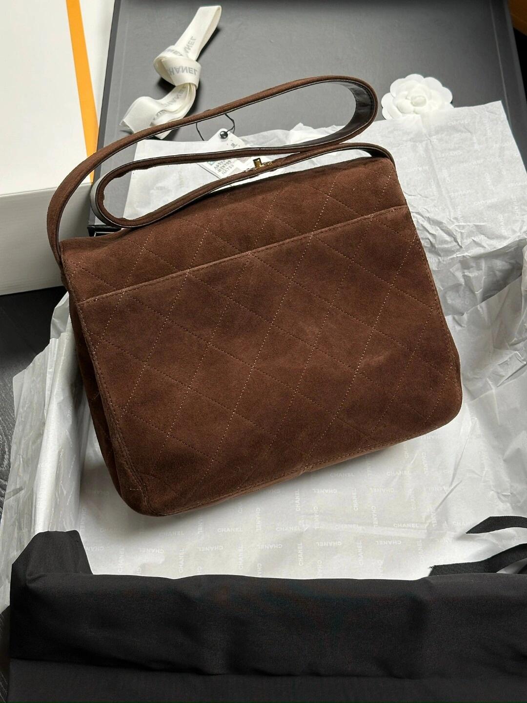 シャネルが提案する秋冬シーズンにぴったりのスエード&レザーコンビネーションバッグ。28×12.5x24cmの大容量ボディに、ヴィンテージ感あふれるココアブラウンの深みのあるカラーリング。表面は牛革の風合いながら、触り心地は厚手スエードの特徴的な質感。調節可能なチェーンストラップで、ショルダーやクロスボディなど多彩なスタイリングが可能です。