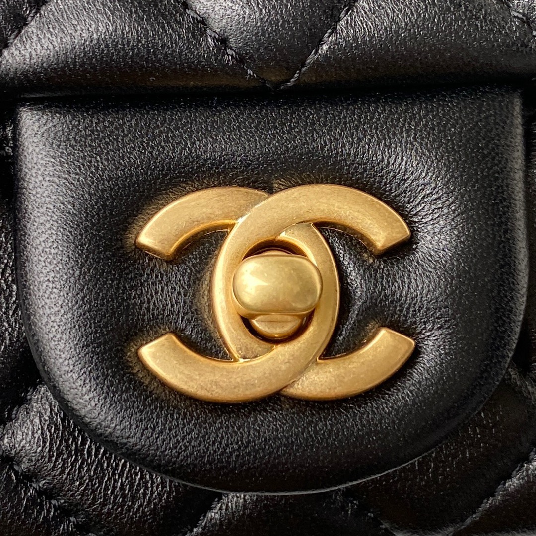 CHANELの象徴的な菱目縫いとダブルCロゴを採用。時代を超えて愛されるデザインで、エレガントな佇まいを演出します。