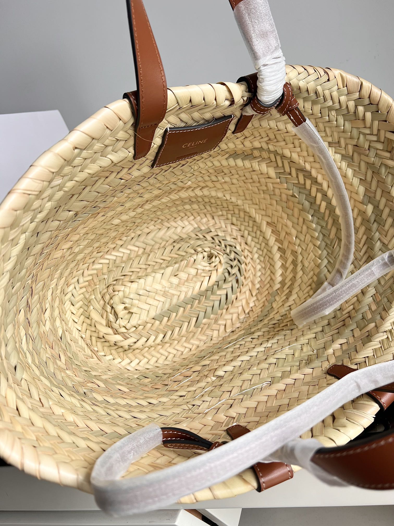 37,800CELINEの2024年夏季限定「Plein Soleil」コレクションに登場した天然パームリーフ製のバスケットバッグ。31x20x12cmの大容量ボディで、ビーチアイテムや日常小物を収納可能。手編みのナチュラルな質感に、ブラックレザーのトリムとゴールドのトリオンフモチーフが洗練さを加えています47。付属のレザーショルダーストラップで、手提げや斜め掛けの2WAYスタイルに対応。