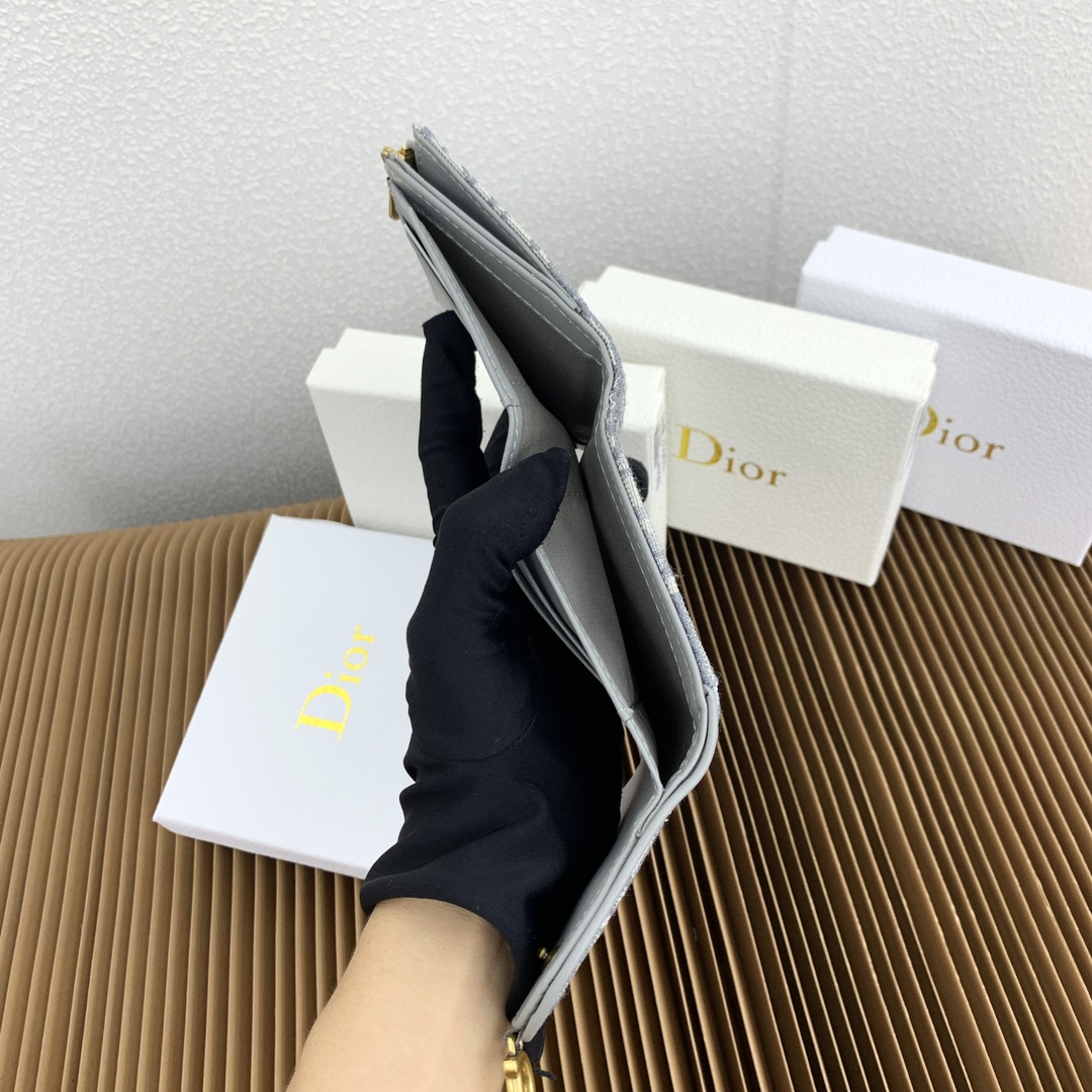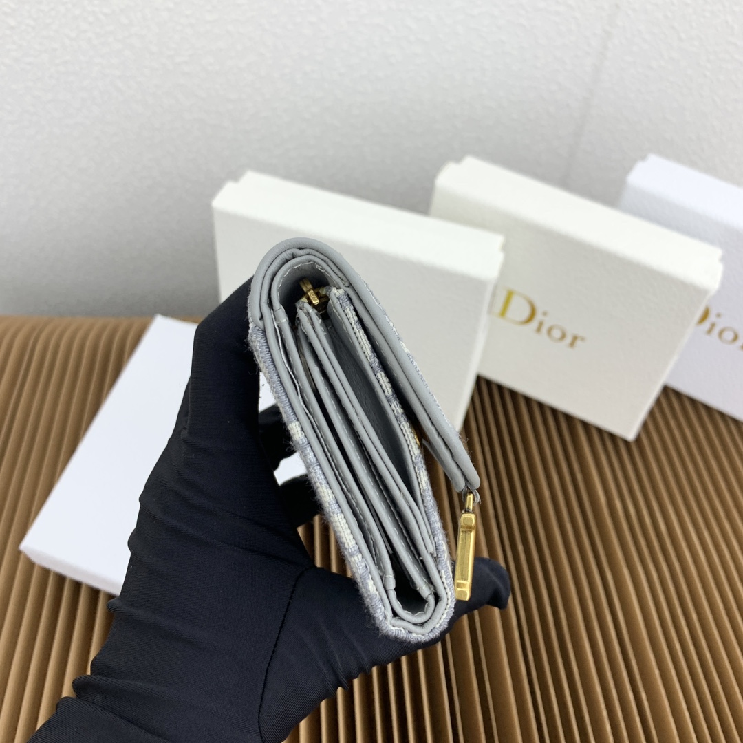 Lady Dior Lotus 三折財布は、クラシックなカanvas レザーデザインを採用し、ソフトな羊皮革で丁寧に仕上げたアイテムです。アシンメトリーなフリップフタとゴールドのD字型金具が特徴的で、実用性と装飾性を両立しています。内部にはカードスロット4つ、ジップポケット1つを含む多層構造で、日常の必需品をスマートに収納可能です。