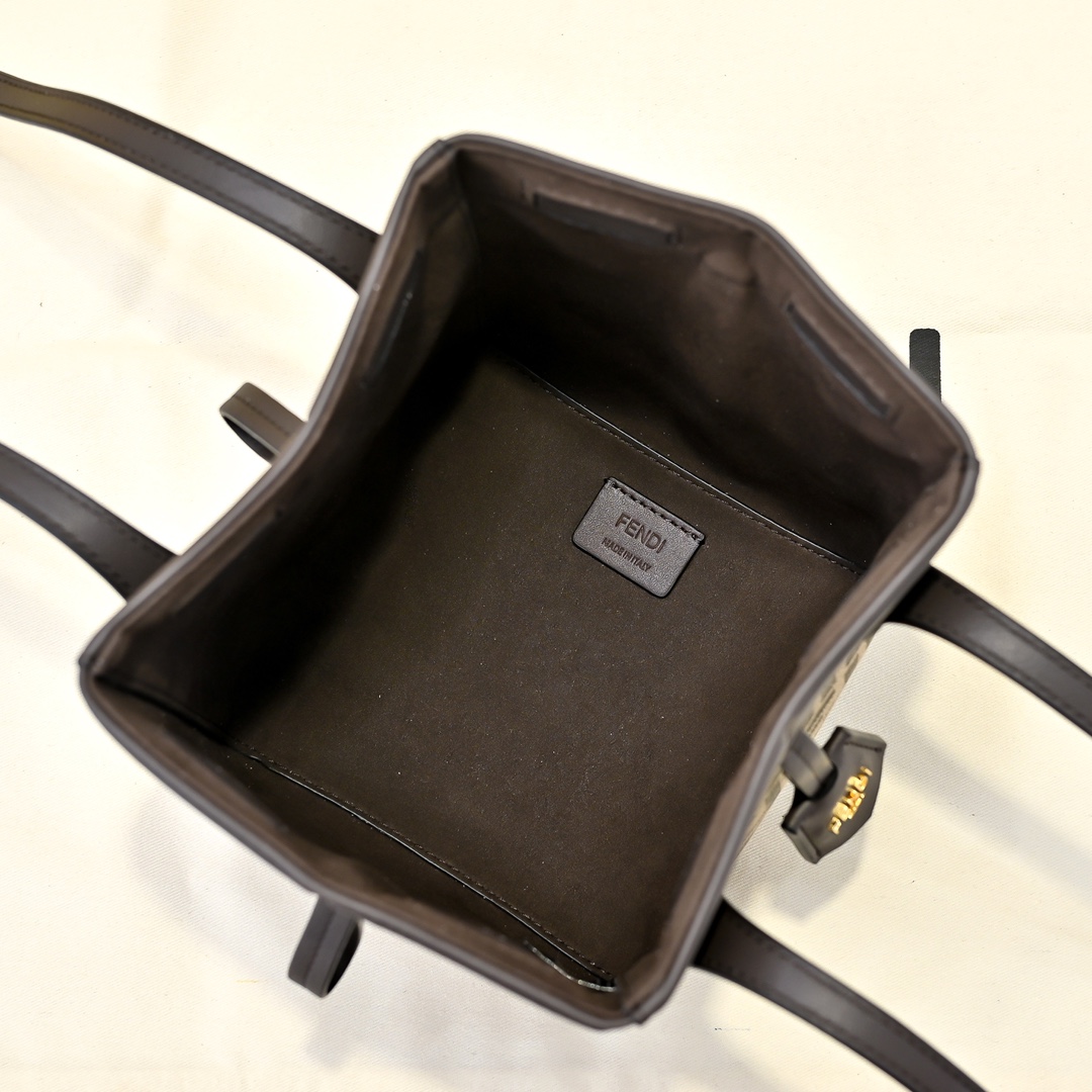 フェンディの独創的なオリガミデザイン。8つのマグネット式留め具により、トートバッグとバケットバッグの2形態に自由に変形可能な革新的な構造。