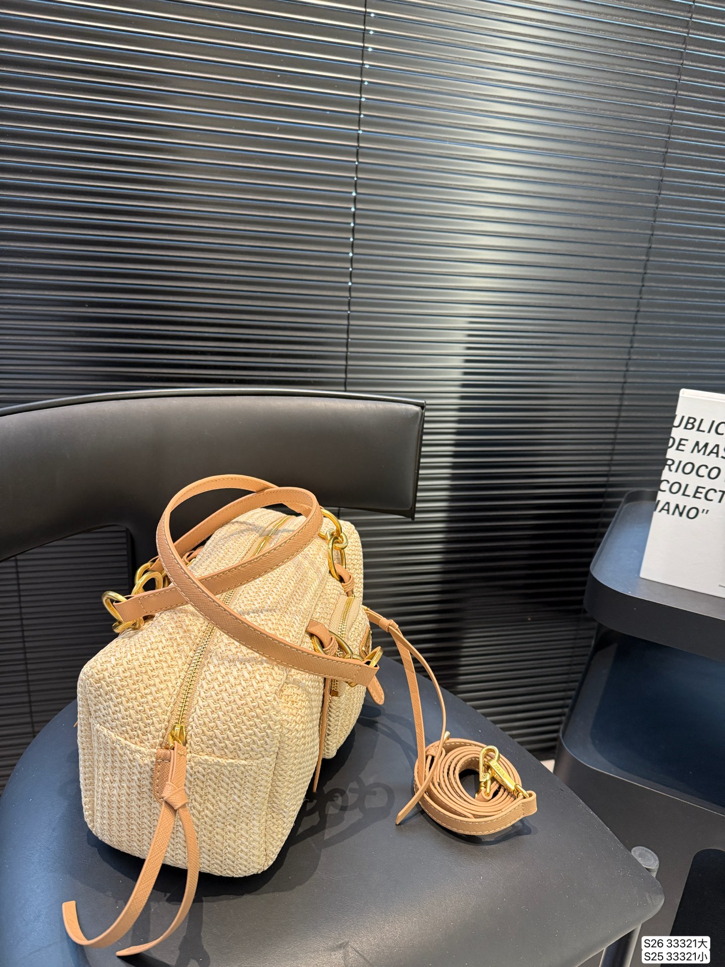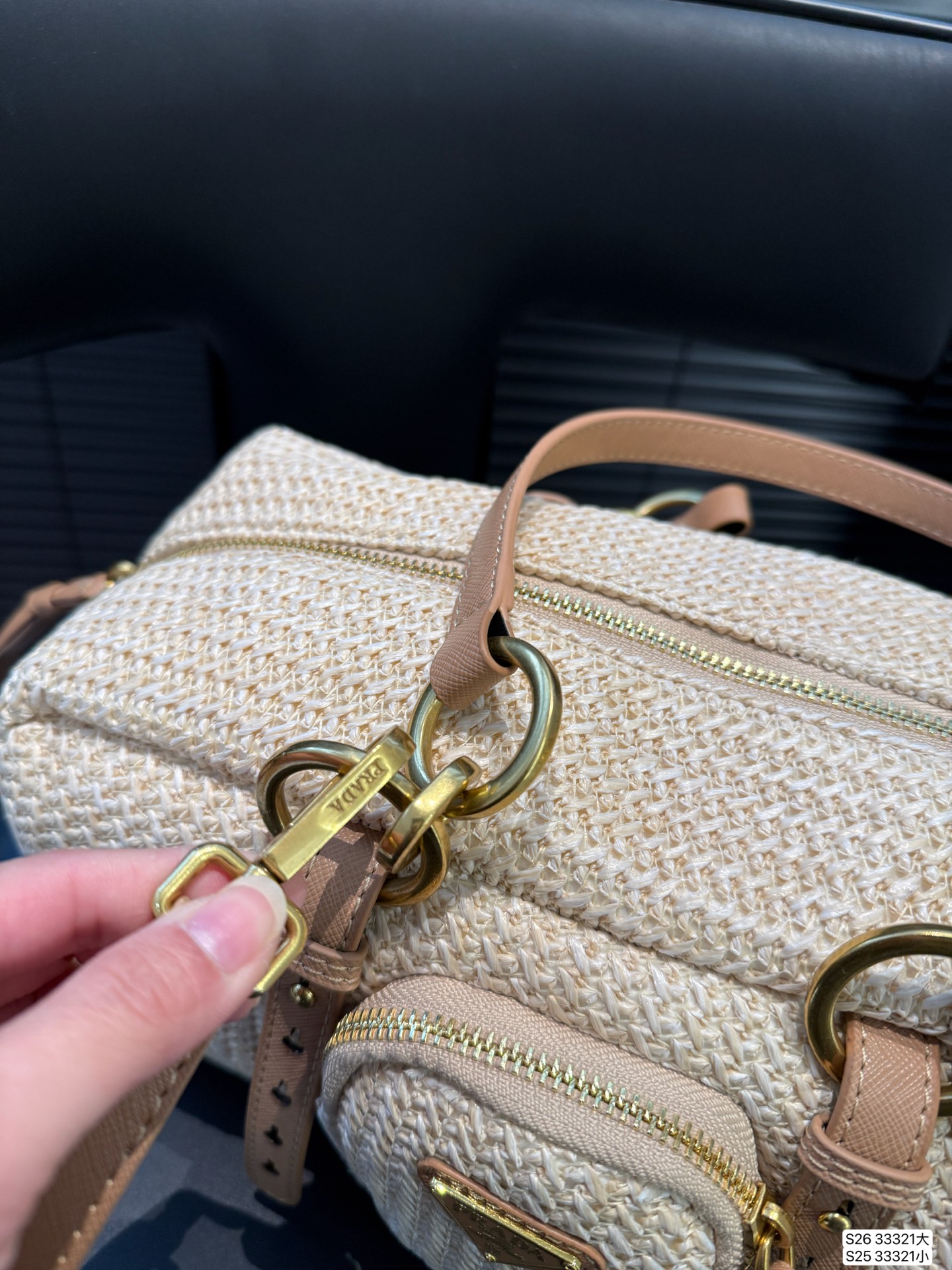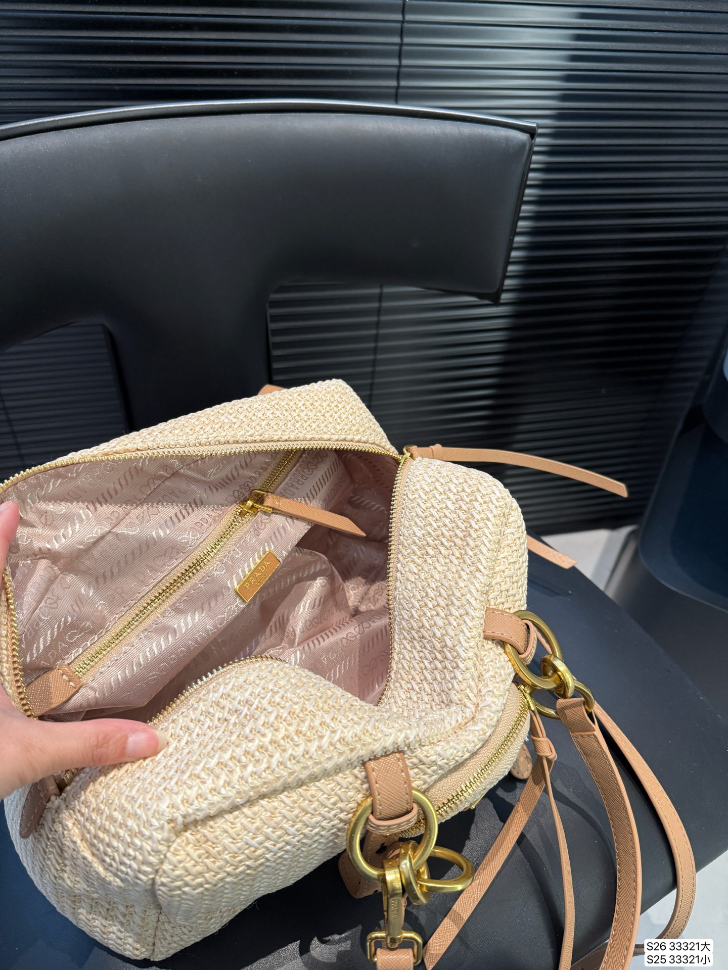 30x15cmのコンパクトサイズにプラダ特注のブレードレザーを採用。
