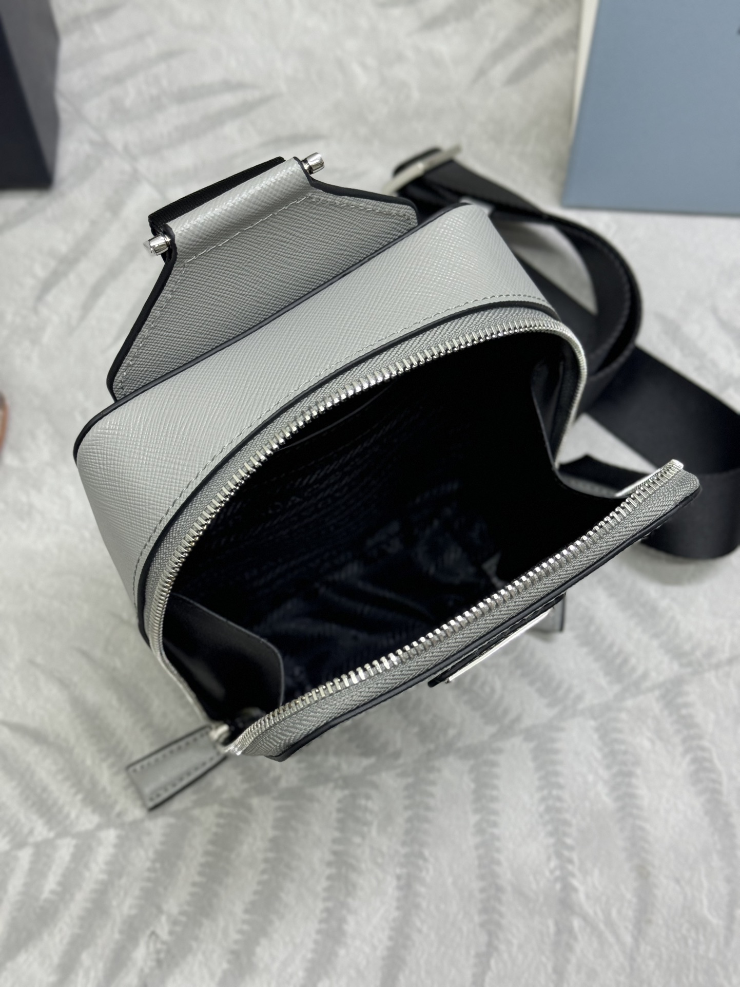 プラダの新作「2VZ106」は、輸入クロスグレインレザーの耐久性と洗練された質感を兼ね備えたコンパクトチェストバッグ。縦14x横20xマチ5cmのスリムフォルムが身体にフィットし、両開きジッパーで中身の出し入れがスムーズ。アジャスタブルなテキスタイルストラップでチェスト・ウエスト位置に自在に着用可能。内側のスリットポケットでカードや現金を整理収納。シンプルな直線デザインとプラダの三角形メタルロゴが、カジュアルからアウトドアスタイルまでを引き締める存在感を放ちます。