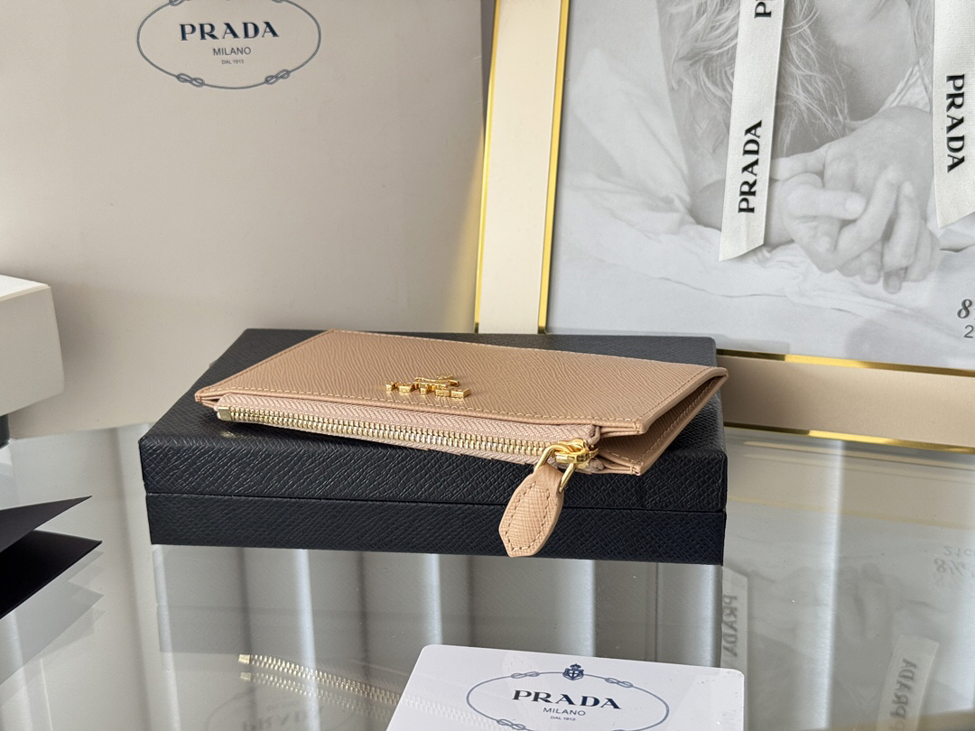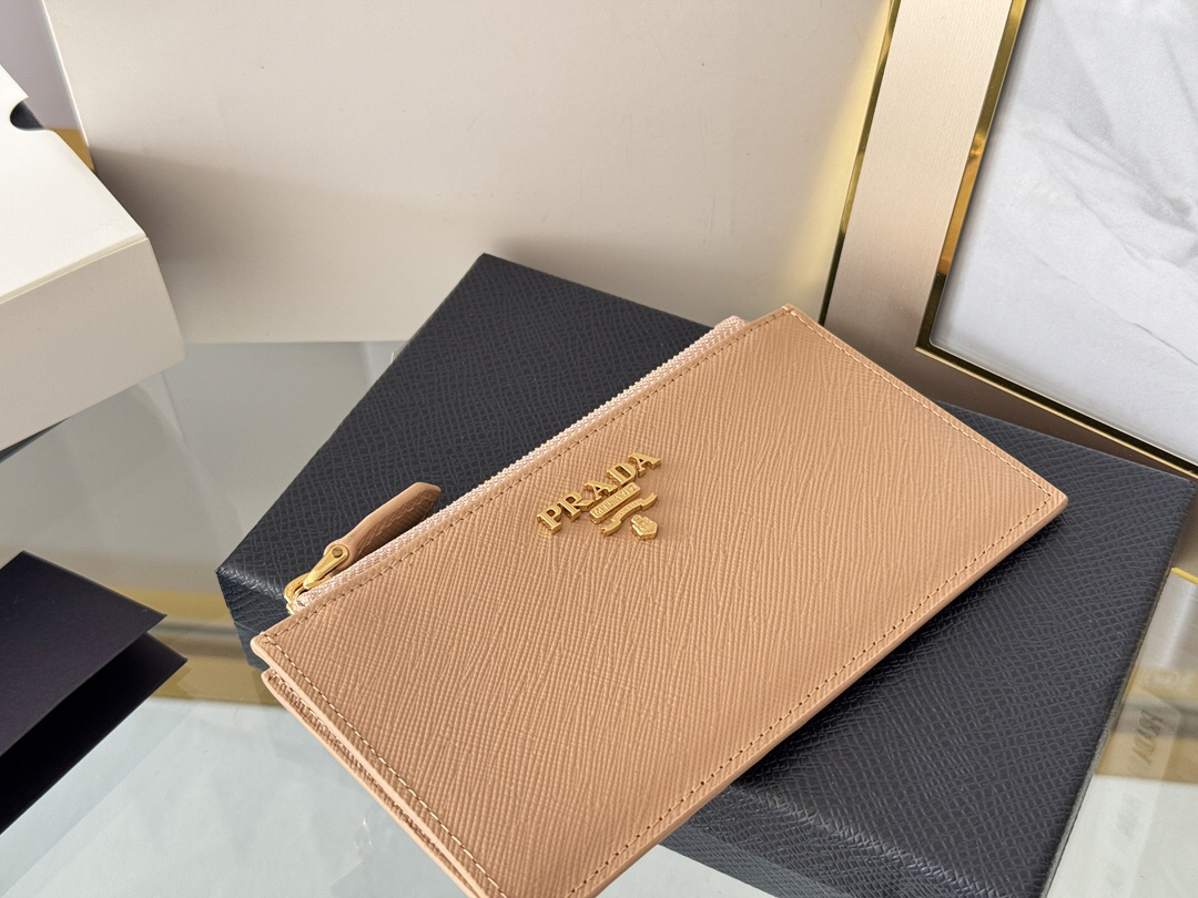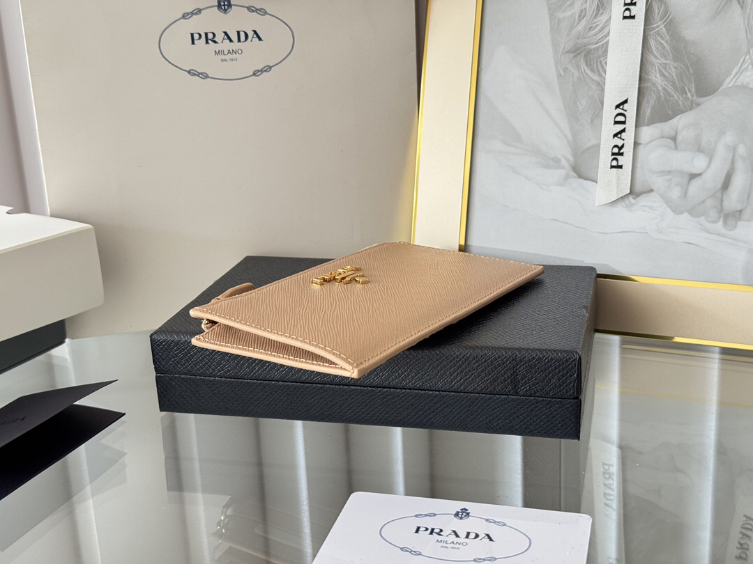 プラダのアイコンであるサフィアーノレザー(十字押し牛革)を使用したユニセックスカードケース(8x15cm)。6カードスロットとファスナー付きコインケースを備え、コンパクトながら収納力抜群。滑りにくいジッパー開閉と軽量設計で、ハンドバッグやポケットへの収納に最適。洗練されたカラーバリエーションとメタルロゴがブランドの美学を体現しています。