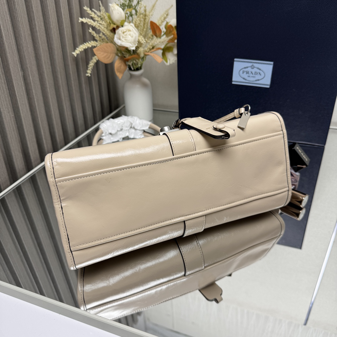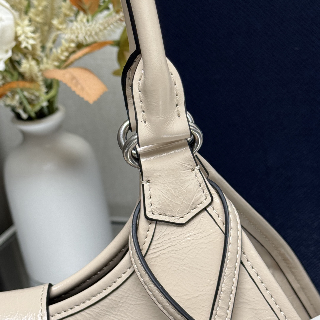 カーブ処理された角部分と均一な縫い目が職人技を証明。メタルハードウェアの輝きが高級感を付加。 -