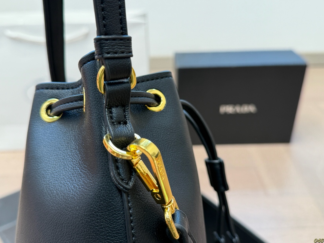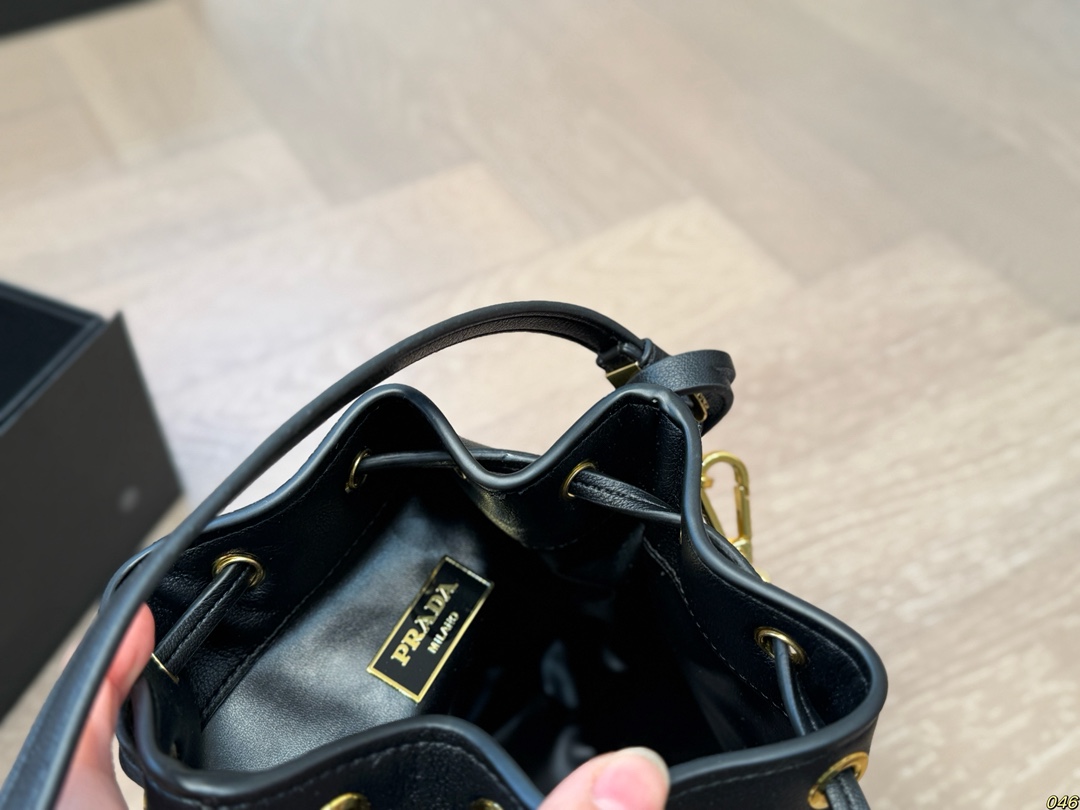 プラダの2023年新作バケットバッグは、イタリアンレザーの伝統工芸とモダンなシルエットを融合。サフィアーノレザーを使用し、軽量ながら耐久性に優れています。メインコンパートメントは抽選式トップで使い勝手良く、アジャスタブルストラップは肩掛け・手持ちの両方に対応。シンプルながらメタルロゴが差し色となり、カジュアルからエレガントなスタイルまで幅広くマッチ。H17cmxW20cmのコンパクトサイズで日常使いに最適です。