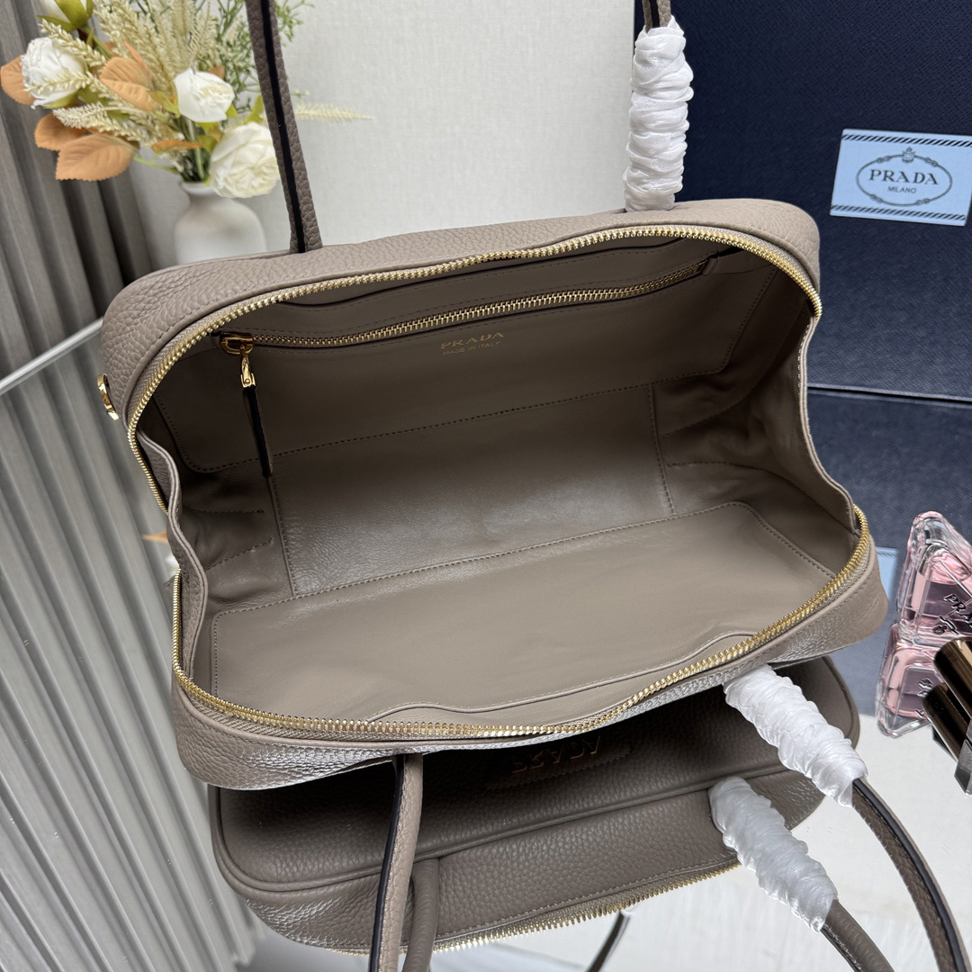 29x14x8.5cmのエレガントなシルエットに、高級感あふれるリッチェレザーを採用。幾何学的なラインがモダンな雰囲気を演出し、着脱可能なロングショルダーストラップで腋下/手持ち両用に対応。内側にはジッパー付きポケットを完備。