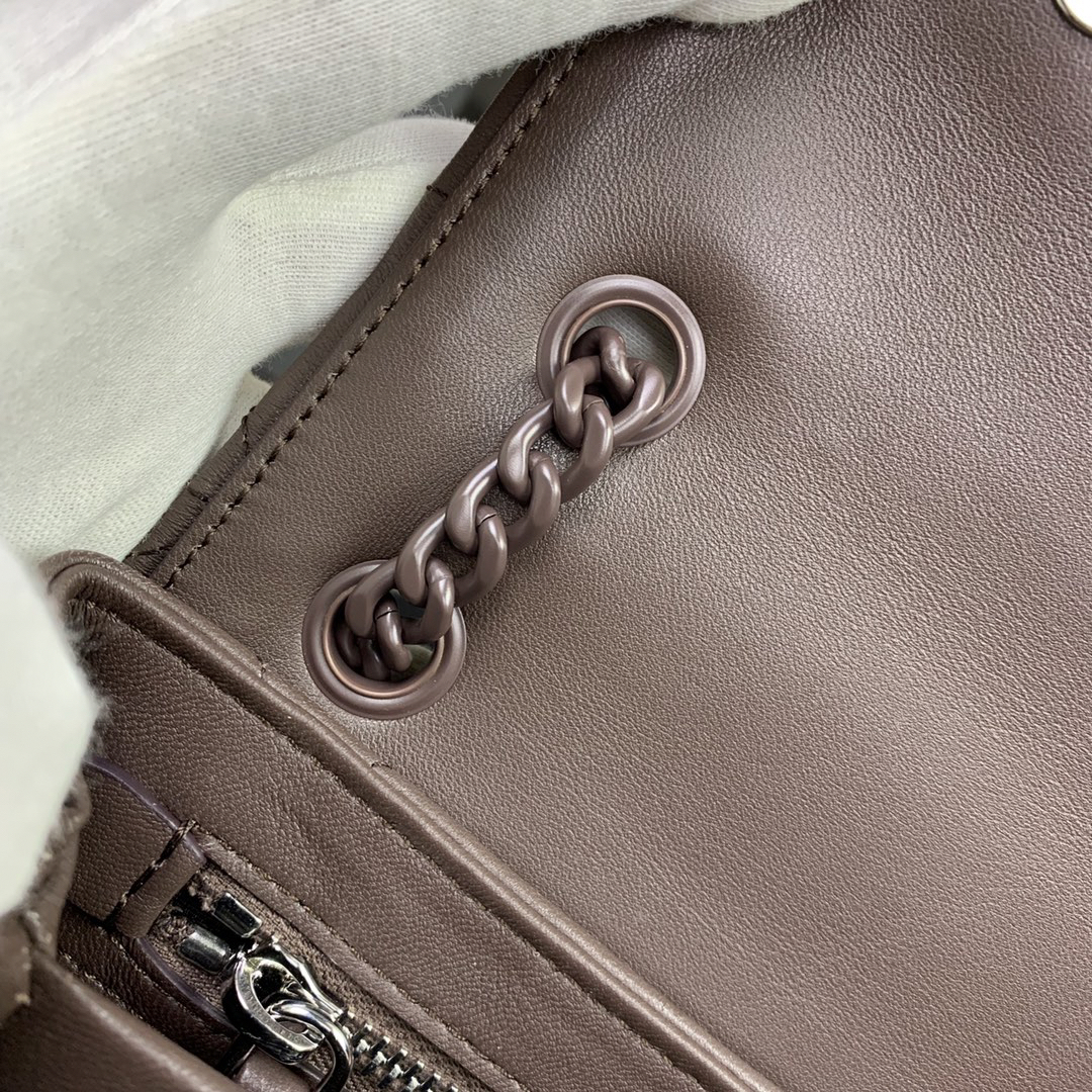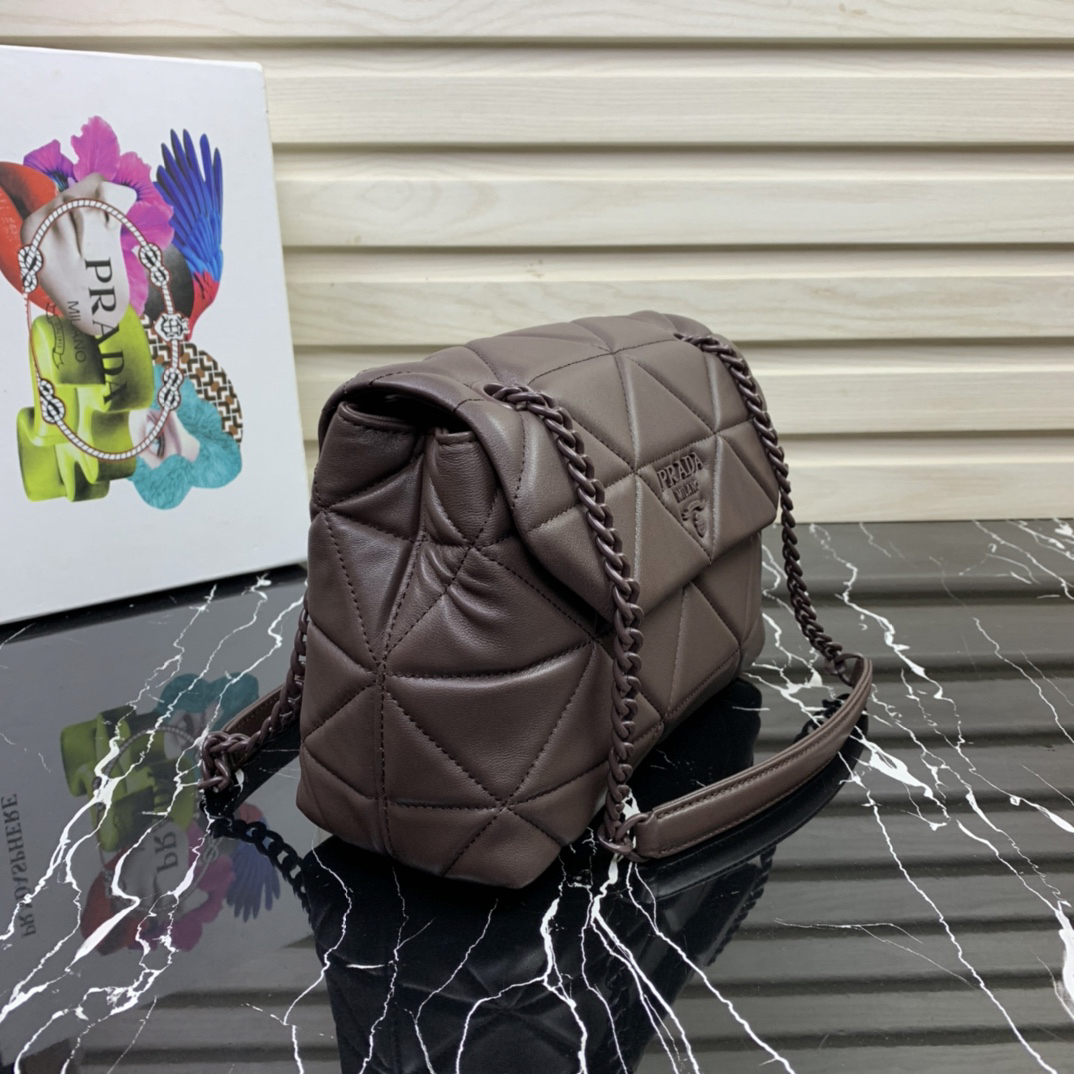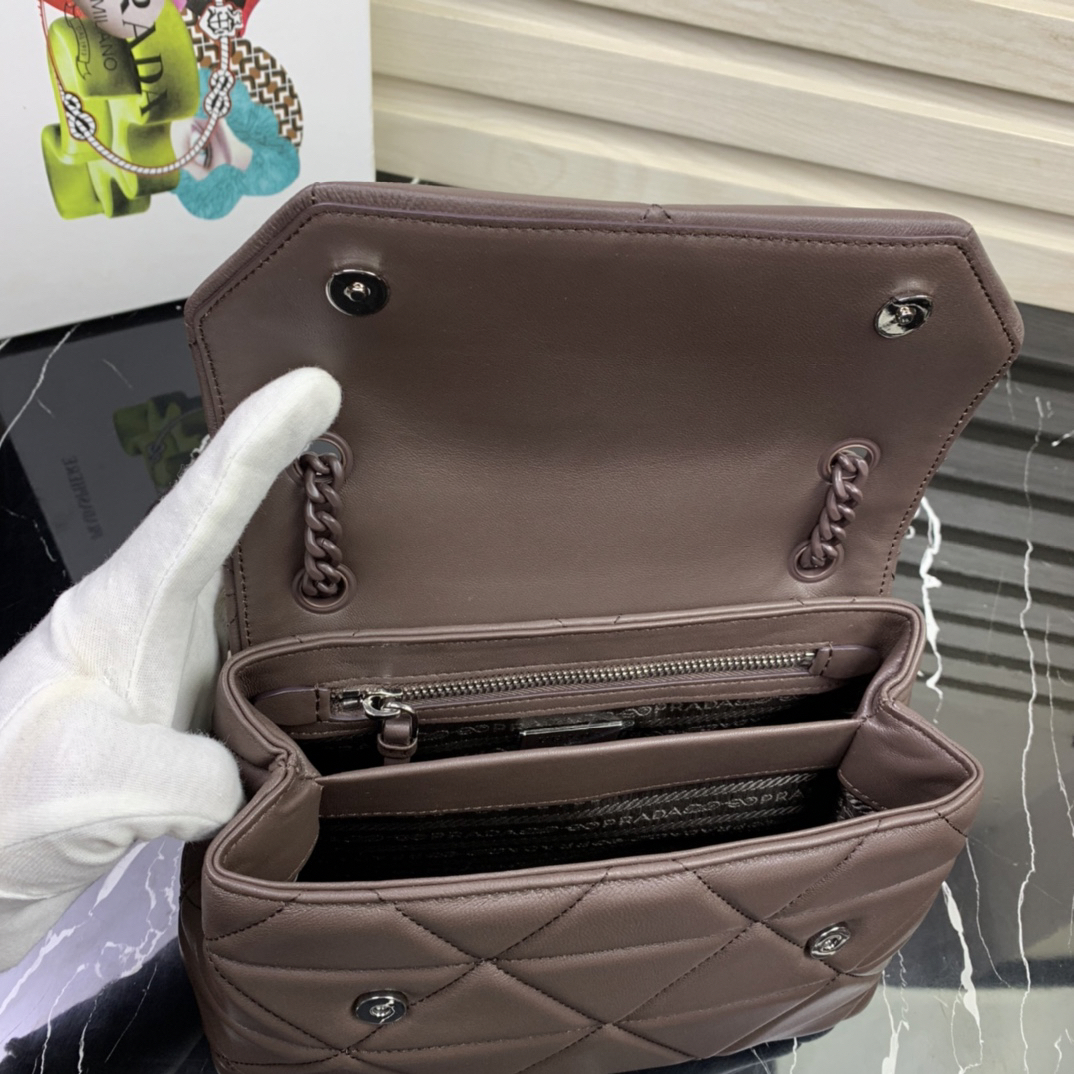 プラダの秋冬新作ミディアムショルダーバッグ(1BD232)は、輸入小羊革の驚異的な柔軟性と光沢感が特徴。25cmx18cmのボディに3つの仕切りポケットを内蔵し、スマートフォン・長財布・化粧ポーチを整理収納可能。メタルチェーンとレザーストラップのダブル仕様で、カジュアルな斜め掛けからフォーマルなショルダー掛けまで自在にスタイルチェンジ。同色系に統一されたメタルロゴとハードウェアが、シンプルながら洗練された視覚的調和を実現。柔らかなフォルムが秋冬の重ね着コーデにもなじむ、実用性とエレガンスを兼ね備えた逸品です。