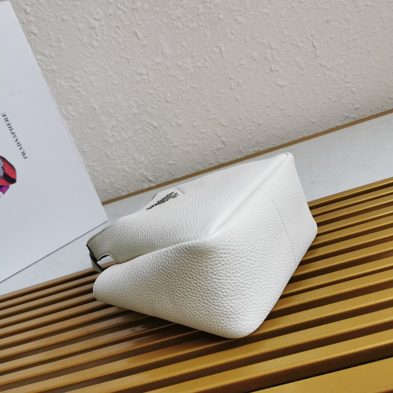 内側全面にプラダロゴ刻印の羊皮を採用。角部の補強縫製と磨き上げ金属金具で長期間の使用に耐える。 -