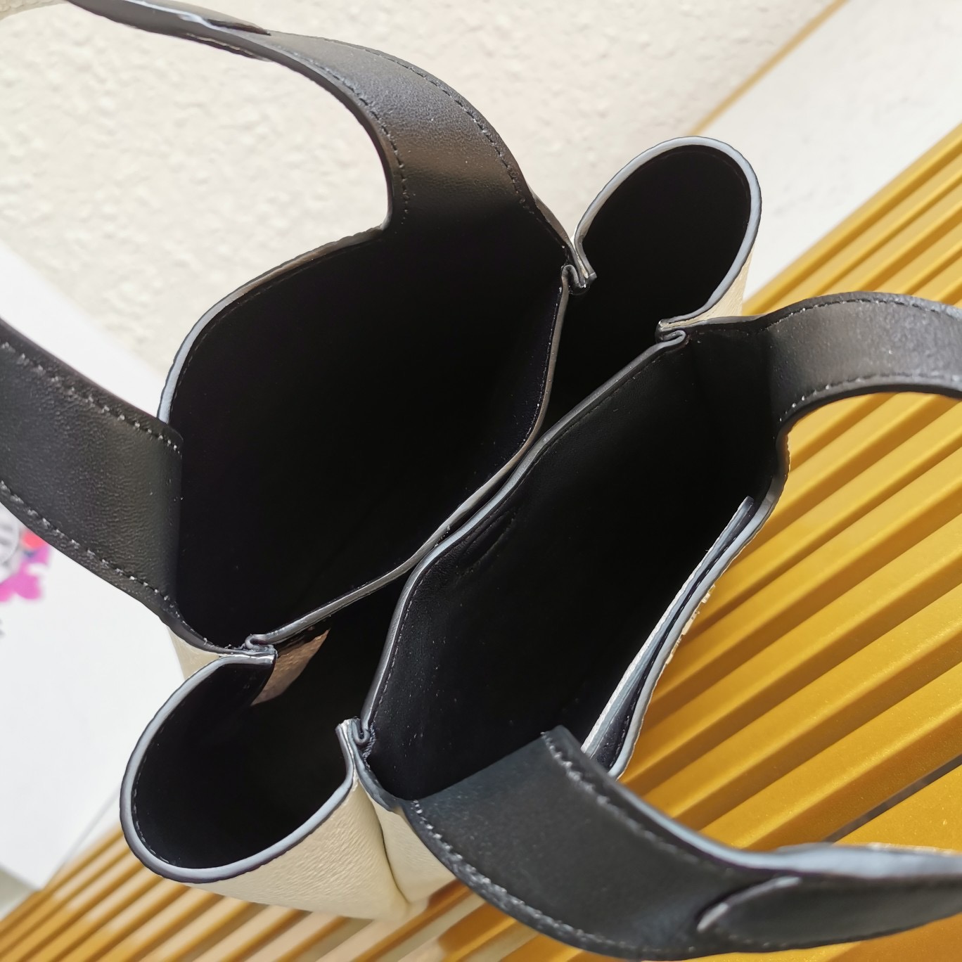 2025年新作のプラダ菜篮子トートは、再生ナイロンとサフィアーーノレザーを組み合わせたエコデザイン。サイズは15.5x18x10cmとコンパクトながら、3層仕切りと磁気留めで収納性抜群。内側は柔らかい羊皮を使用し、軽量性(約300g)と耐久性を両立。ブラック&ブランデーカラーの2色展開で、ビジネスからカジュアルまで幅広くコーーディネート可能。