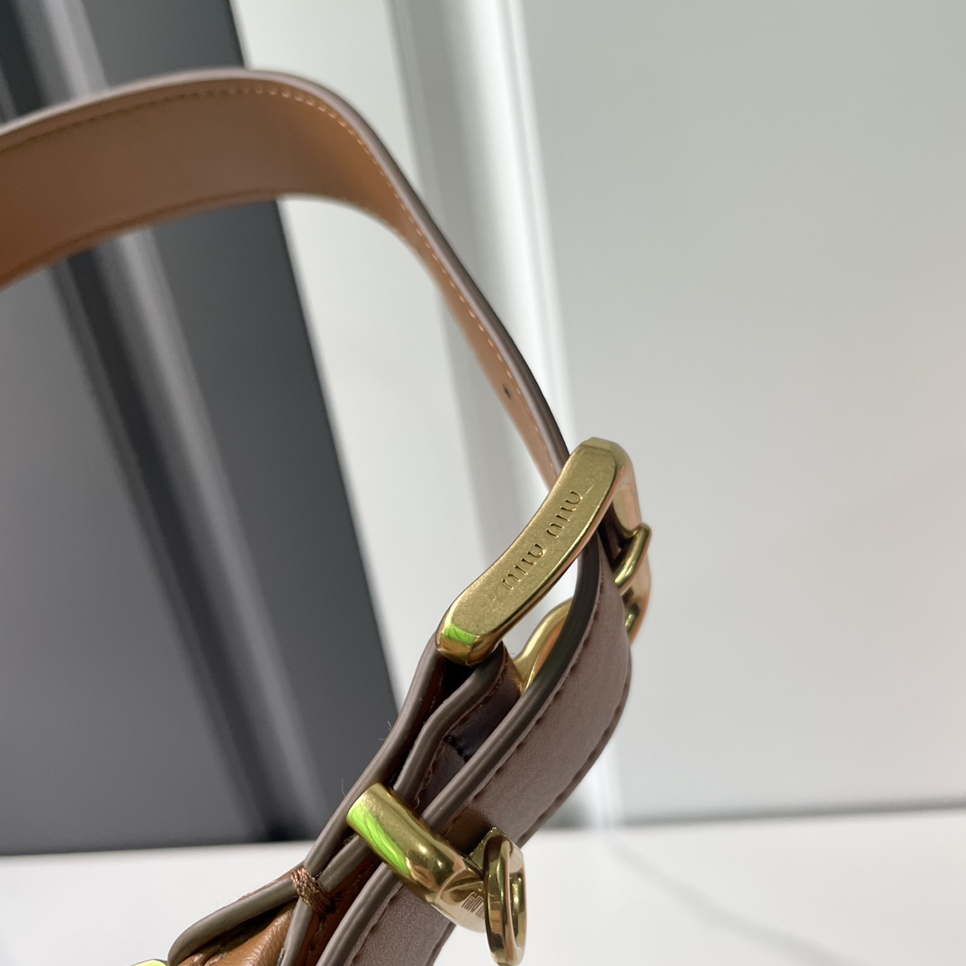 MIUMIUのWander Matelasséコレクションから、ソフトなナッパレザーを使用したホーボーバッグ。流れるような曲線美とクラシックなシルエットが特徴で、肩に自然にフィットするデザインが特徴です。手触りの良いレザーとミニマルな装飾が、モダンなラグジュアリー感を演出。デイリーからフォーマルまで幅広く使える万能アイテムで、女性らしさと機能性を兼ね備えた一品です。
