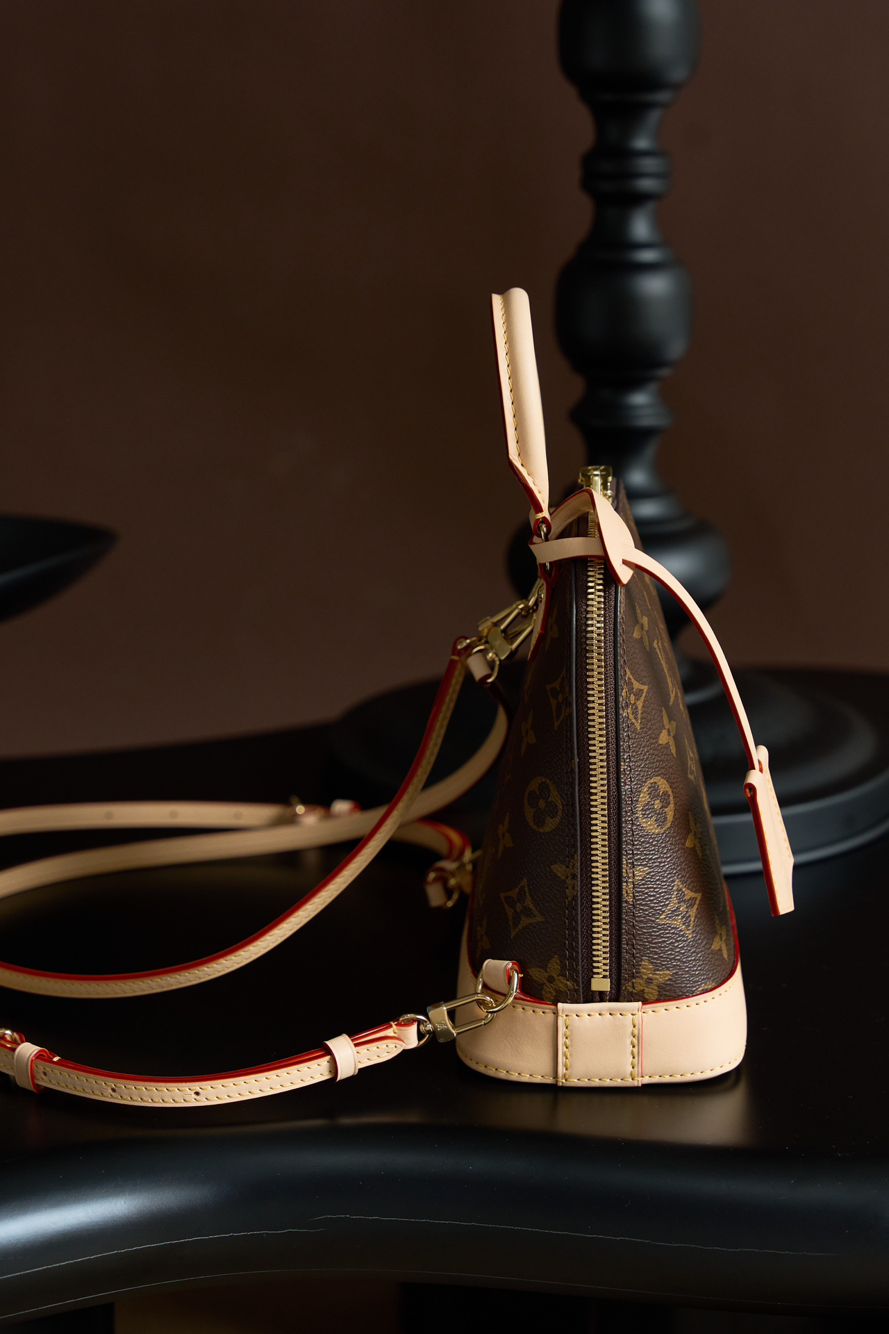 高級素材: 耐久性に優れたモノグラムキャンバスと牛革トリミング