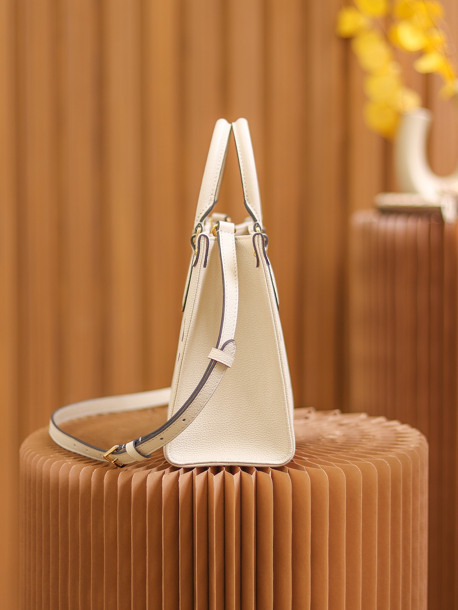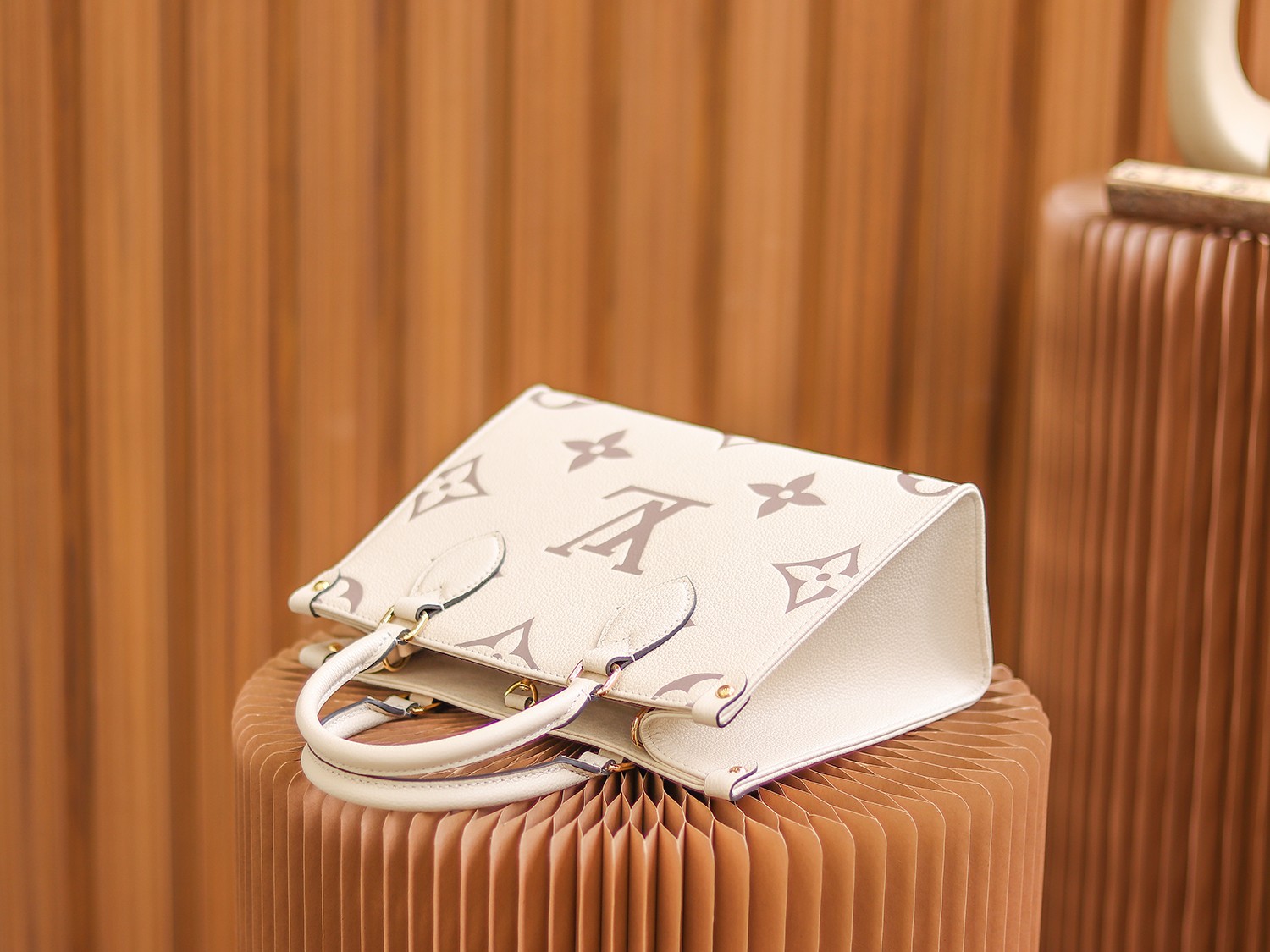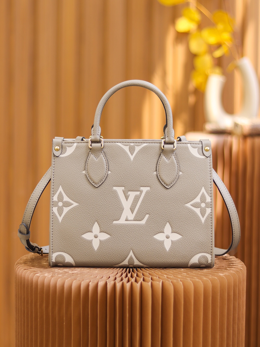 1968年にルイ・ヴィトンが発表した「サック・プラ」から着想を得た「オンザゴー PM」。モノグラム・アンプラント レザーをアップデートし、ミディアムサイズのモノグラム・パターンをバイカラーのエンボス加工で施しました。「オンザゴー」を再解釈したこの小ぶりのバッグは、コンパクトでありながらミニタブレットをはじめとする必需品がしっかりと入る収納力が魅力です。関節式のトップハンドルと取外し & 調節可能なストラップで、さまざまな持ち方を楽しめます。