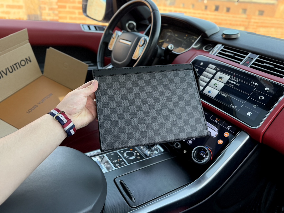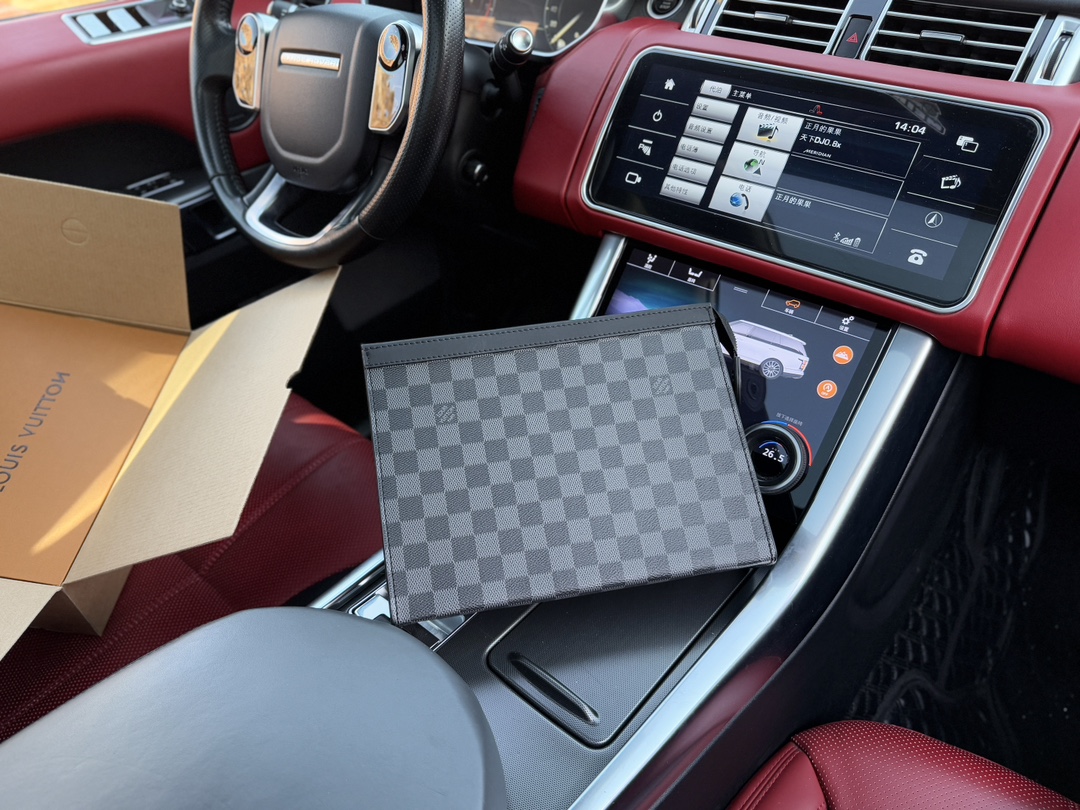 ブランドの象徴: ルイ・ヴィトンのロゴやチェックボード柄が、洗練されたスタイルを完成させます。