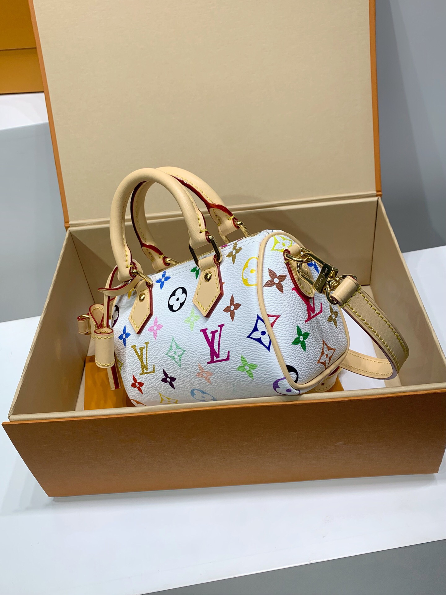 10×7.5x16cmのコンパクトサイズに、モノグラムキャンバスと牛革のトリミングが上品な佇まいを演出。カラフルなデザインが特徴の限定シリーズで、トロン手柄と輝くロックがブランドの旅の歴史を讃えます。取り外し可能なショルダーストラップと、お洒落なLVxTMキーホルダーが付属し、日常使いから特別な日まで様々なシーンで活躍します。