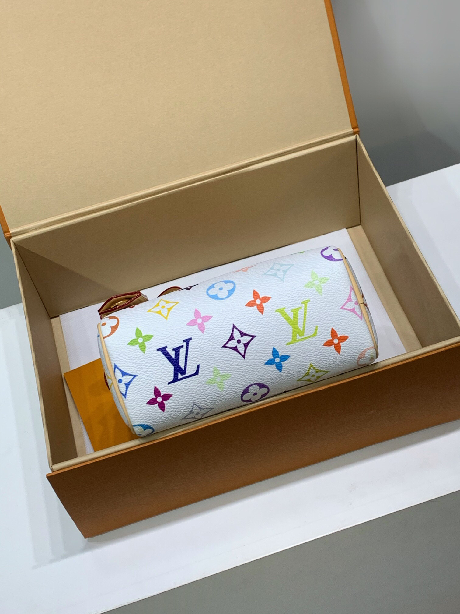 村上隆とのコラボにより、モノグラムキャンバスにカラフルで遊び心溢れるデザインを施した特別仕様。 -