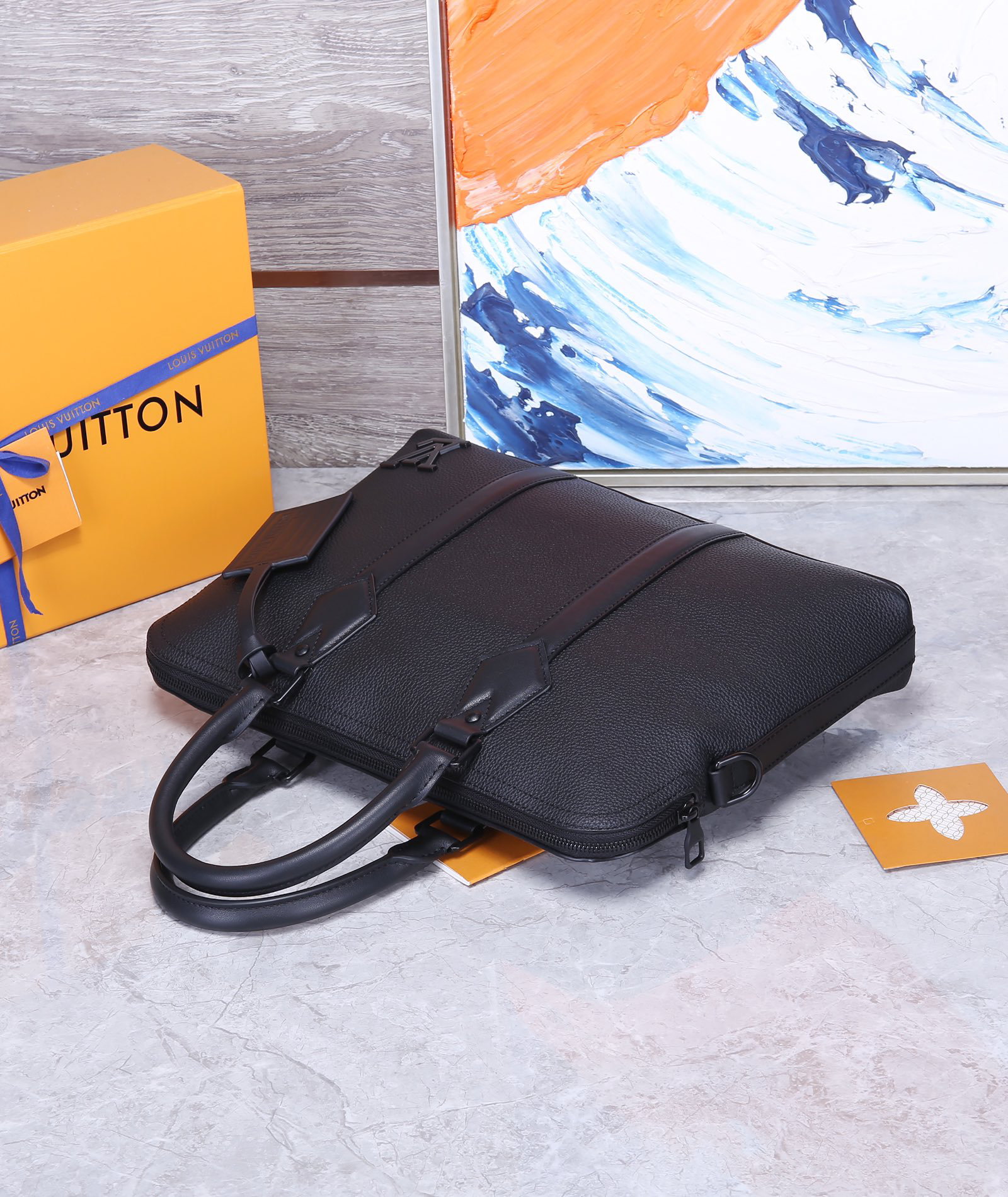 LV Aerogram ビジネスバッグは、上質な牛革を使用した洗練されたデザインが特徴です。航空郵便を思わせる柔らかな質感と、同色調のメタリックLVロゴがエレガントな印象を演出。メインコンコンパートメントにはA4ファイルが収納可能なスペースを備え、実用的な内ポケットやペン差しも配置。ビジネスシーンからカジュアルな外出まで、多様なスタイルに対応する機能美を実現しました。