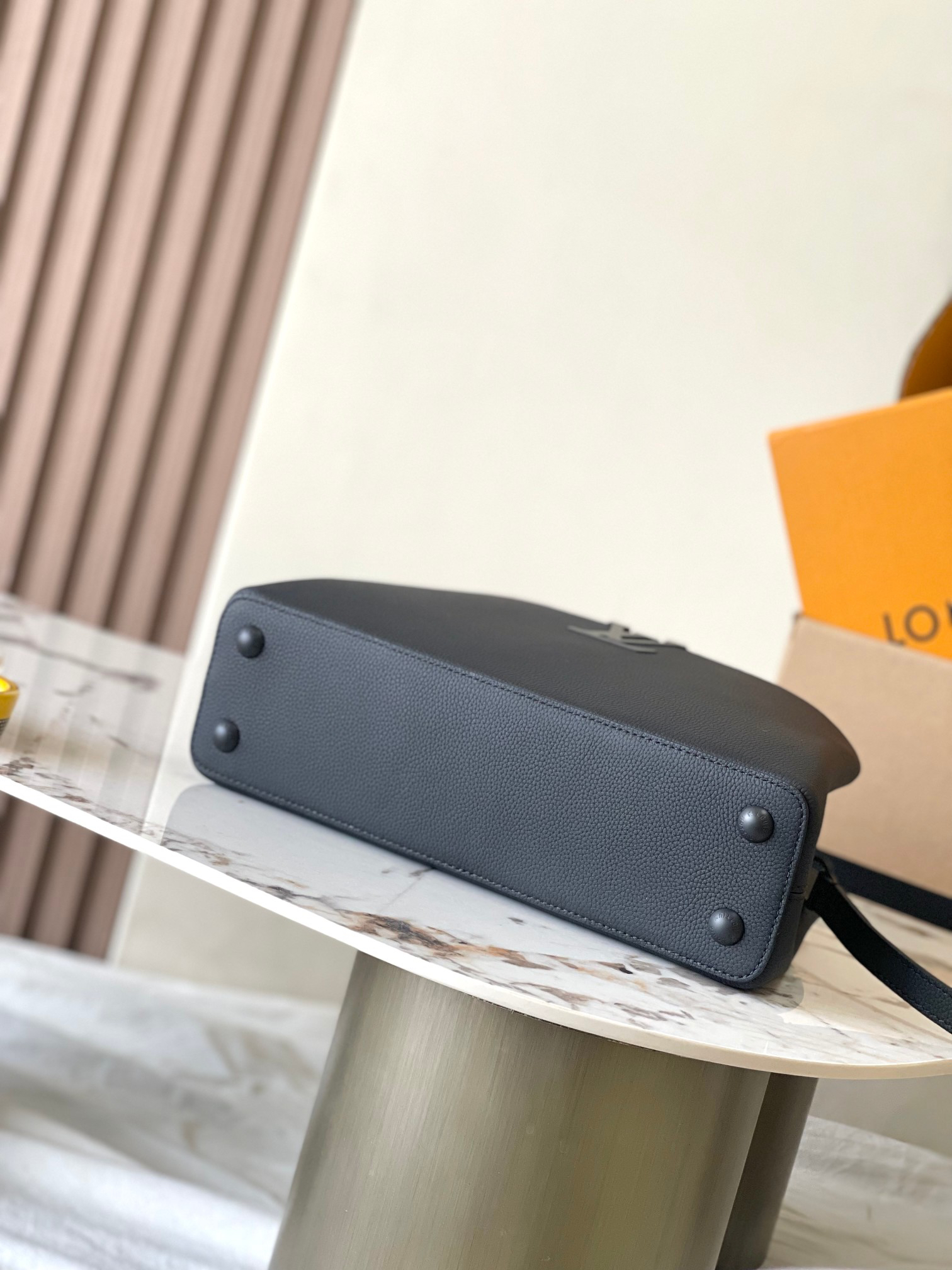 - ディテール: LVモノグラムの金属金具と磁石留めでセキュリティ確保。