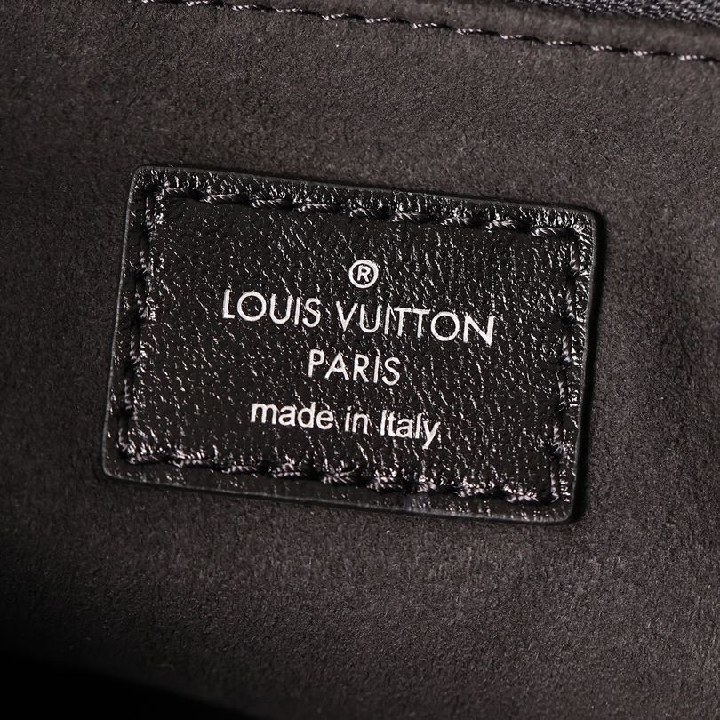 スタイリッシュなディテール: 金属LVロゴ付きネームタグとブラックカラーが洗練された雰囲気を演出。