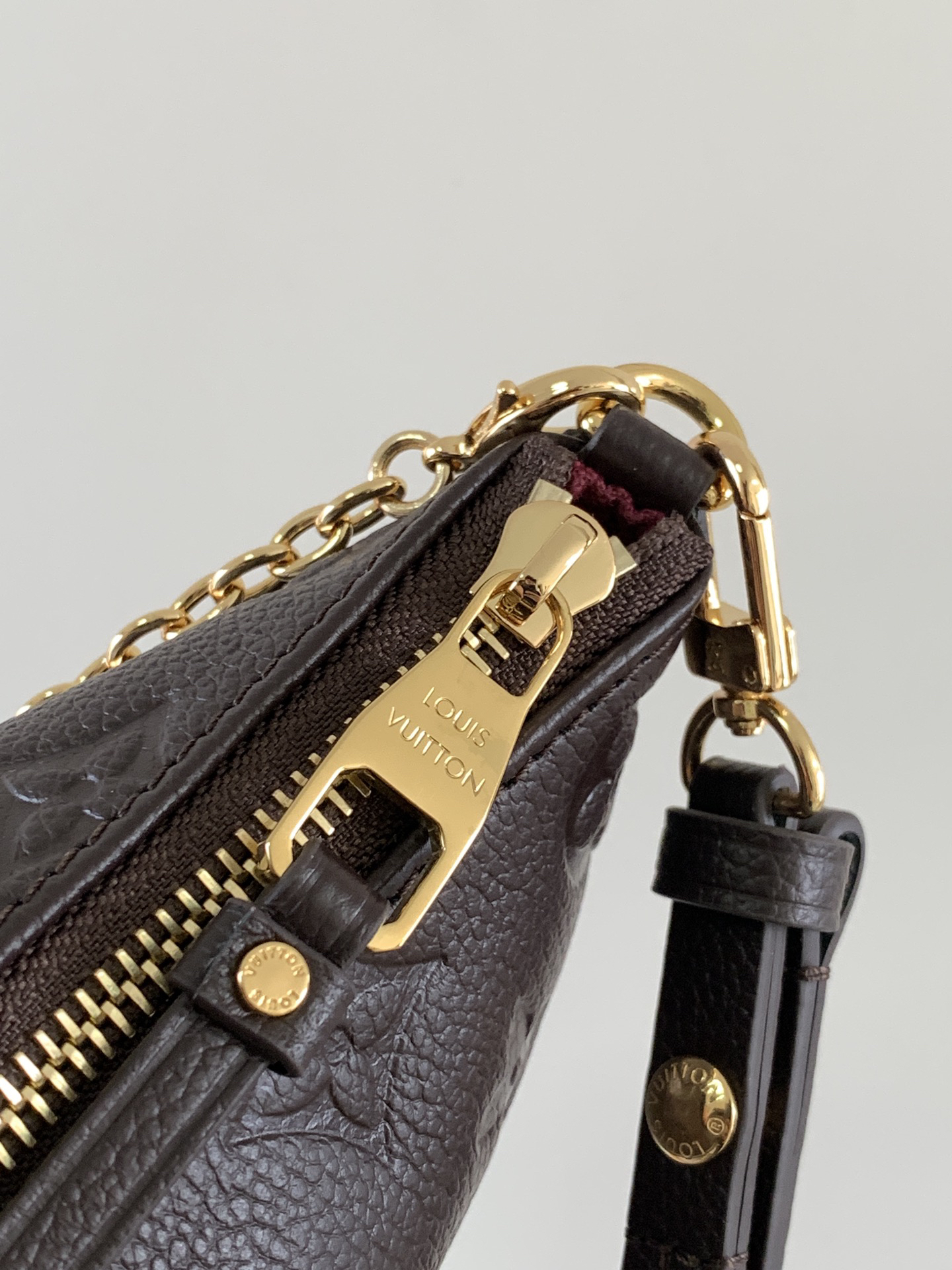 EASY POUCH ハンドバッグは、コンパクトながら実用的なデザインが特徴のアイテム12。11.5x3x19cmのサイズで、スマートフォンや小型財布、鍵などの日常必需品を収納可能。チョコレートカラーのMonogram Empreinte皮革を使用し、上品な質感と柔らかな触り心地を実現。D型リング付きでチャームやキーホルダーの装着も可能。