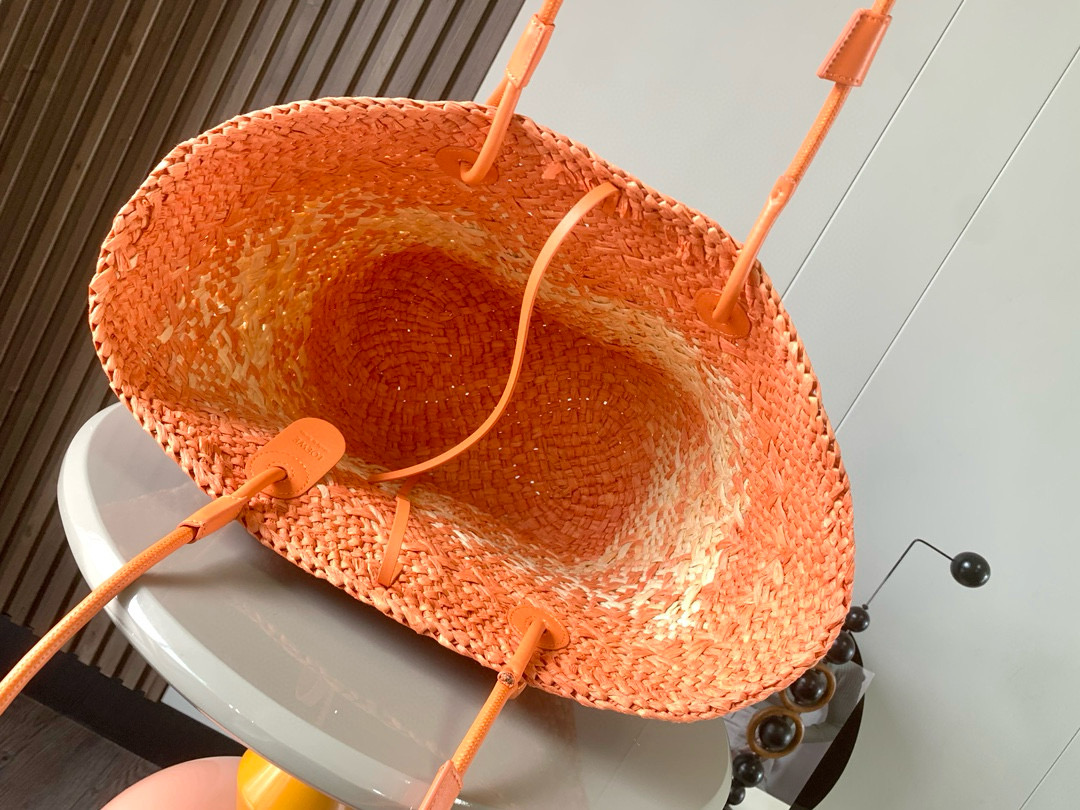 LOEWEの2025年夏新作となるパルミヤリーフ(棕櫚葉)と小牛皮革を組み合わせたバスケット型トート。コロンビア産の天然ヤシ繊維をフェアトレードで調達し、スペイン工匠が伝統的な手編み技法で制作。38x46cmの大容量ボディにアナグラムロゴ刻印のレザーハンドルを配し、ビーチ用品や日常小物をスタイリッシュに収納。ナチュラルベージュに加え、限定カラーのスカイブルーなどリゾートカラーを展開。