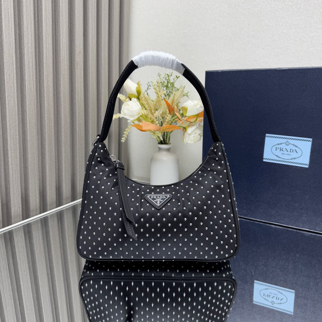 プラダ「Prada」リベットデザイン ホーボーバッグ ショルダーバッグ