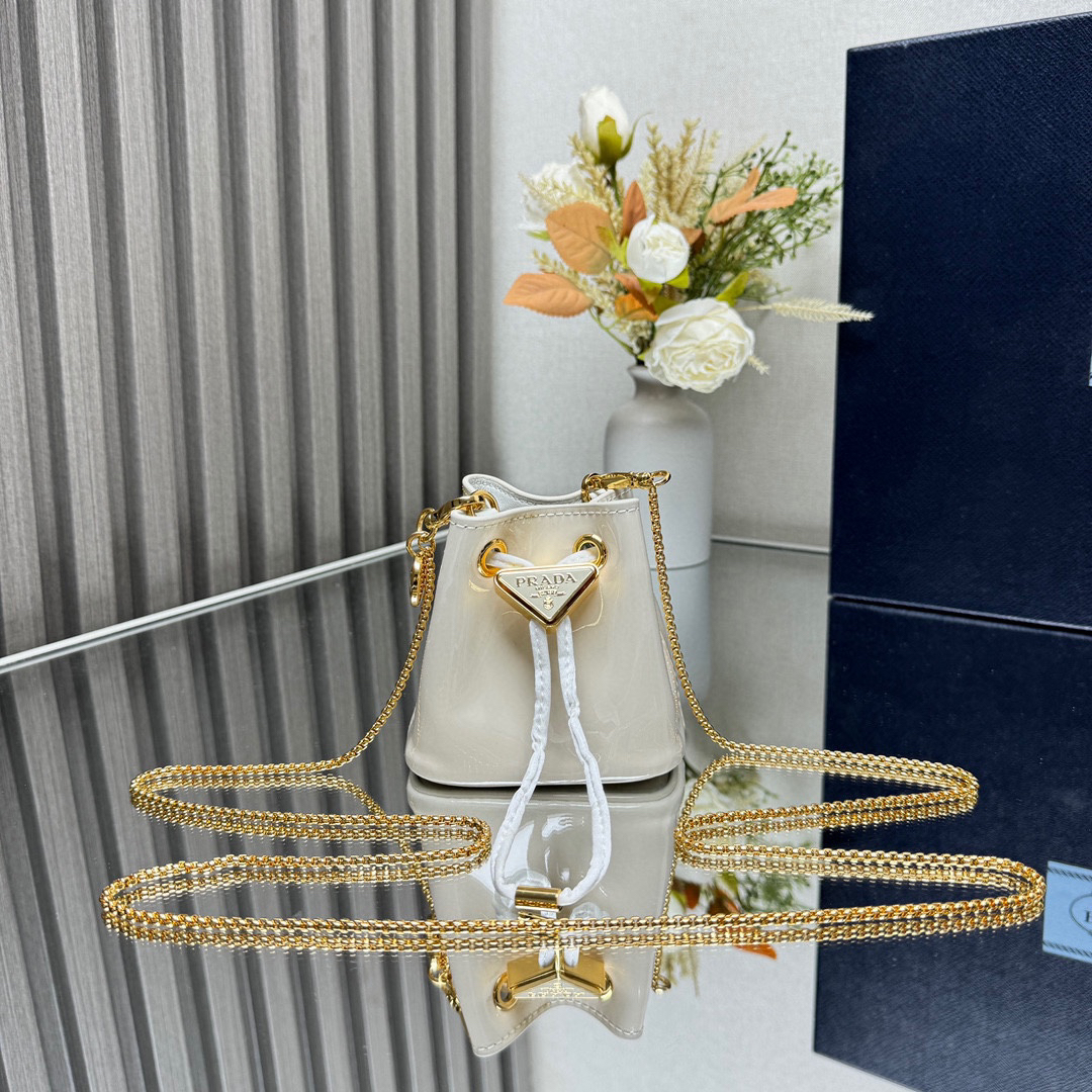 プラダ「Prada」エナメルレザー ボトルバッグ ミニバッグ