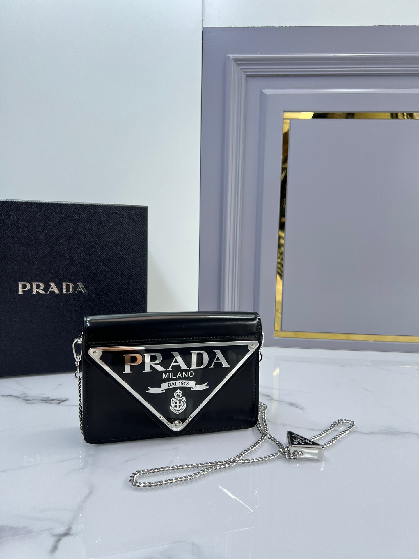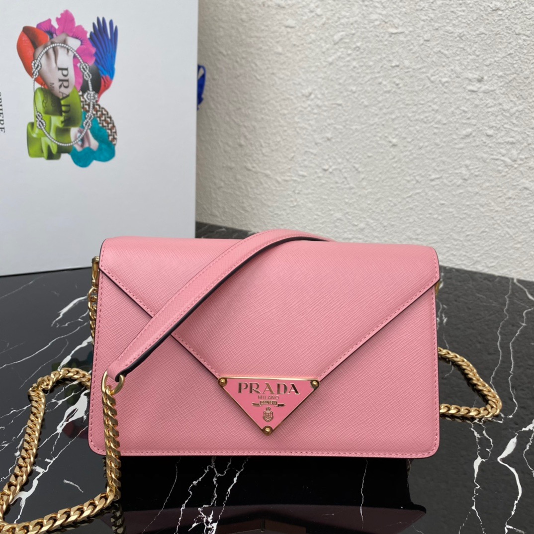 プラダ「Prada」逆三角形チェーン フラップショルダーバッグ ミニバッグ