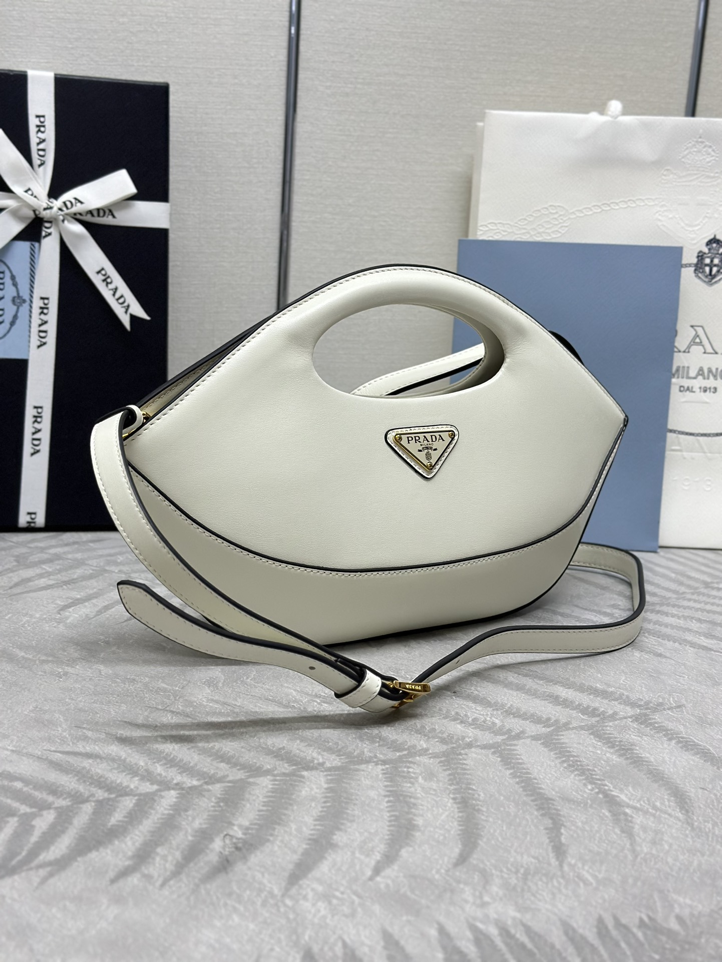 プラダ「Prada」レザーカット ボトルバッグ ミニバッグ