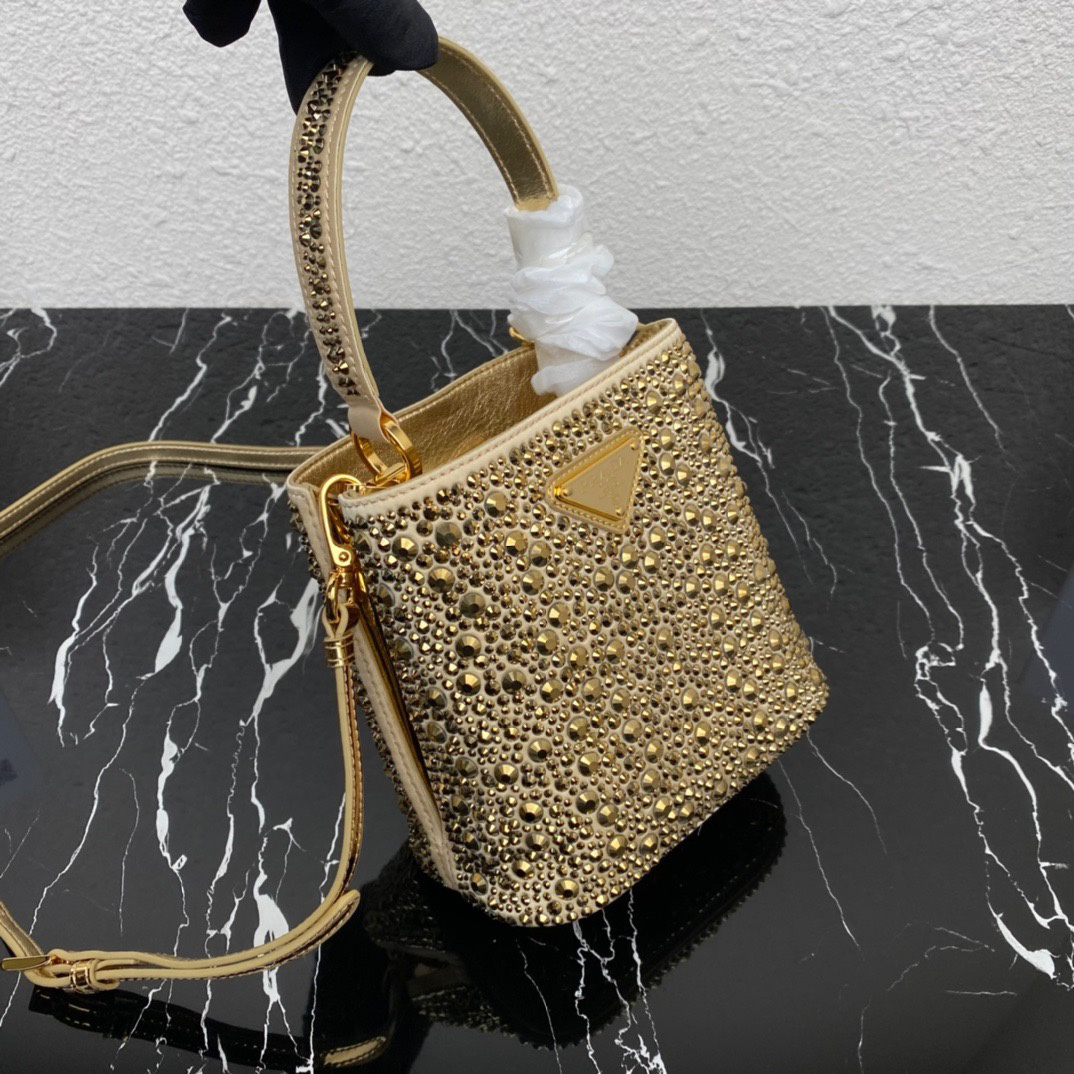プラダ「Prada」クリスタルエンベリッシュバケットバッグ