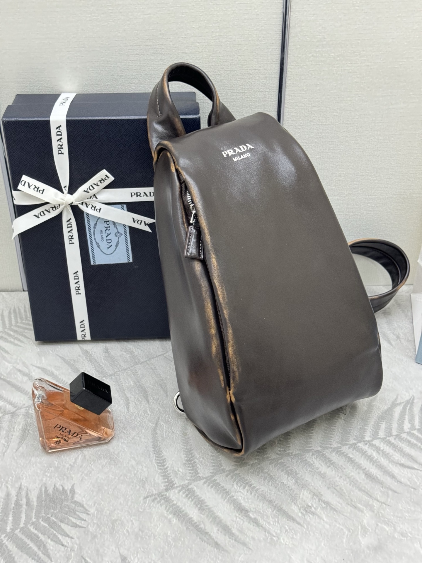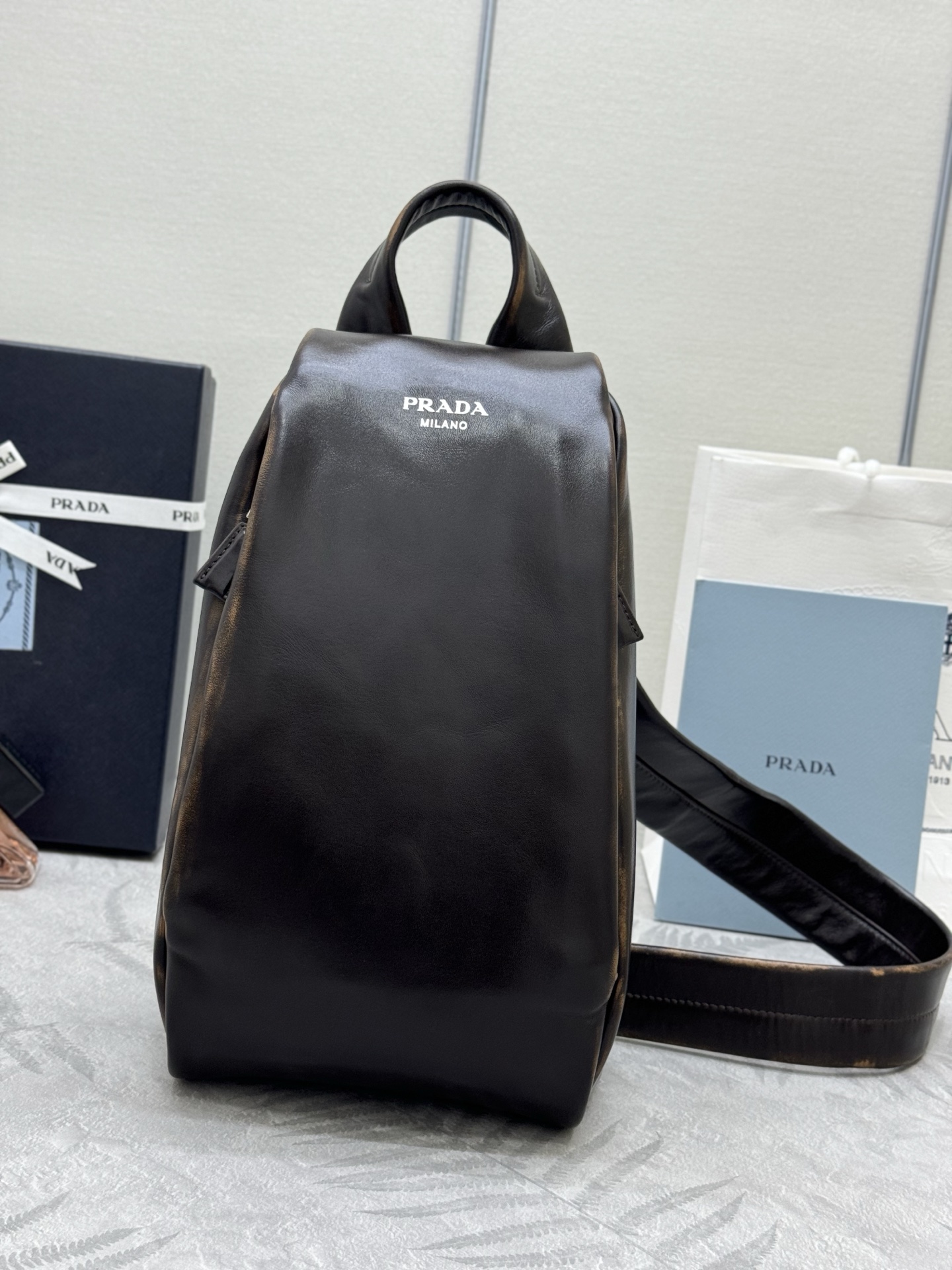 プラダ「Prada」 ディストレスドレザー チェストバッグ
