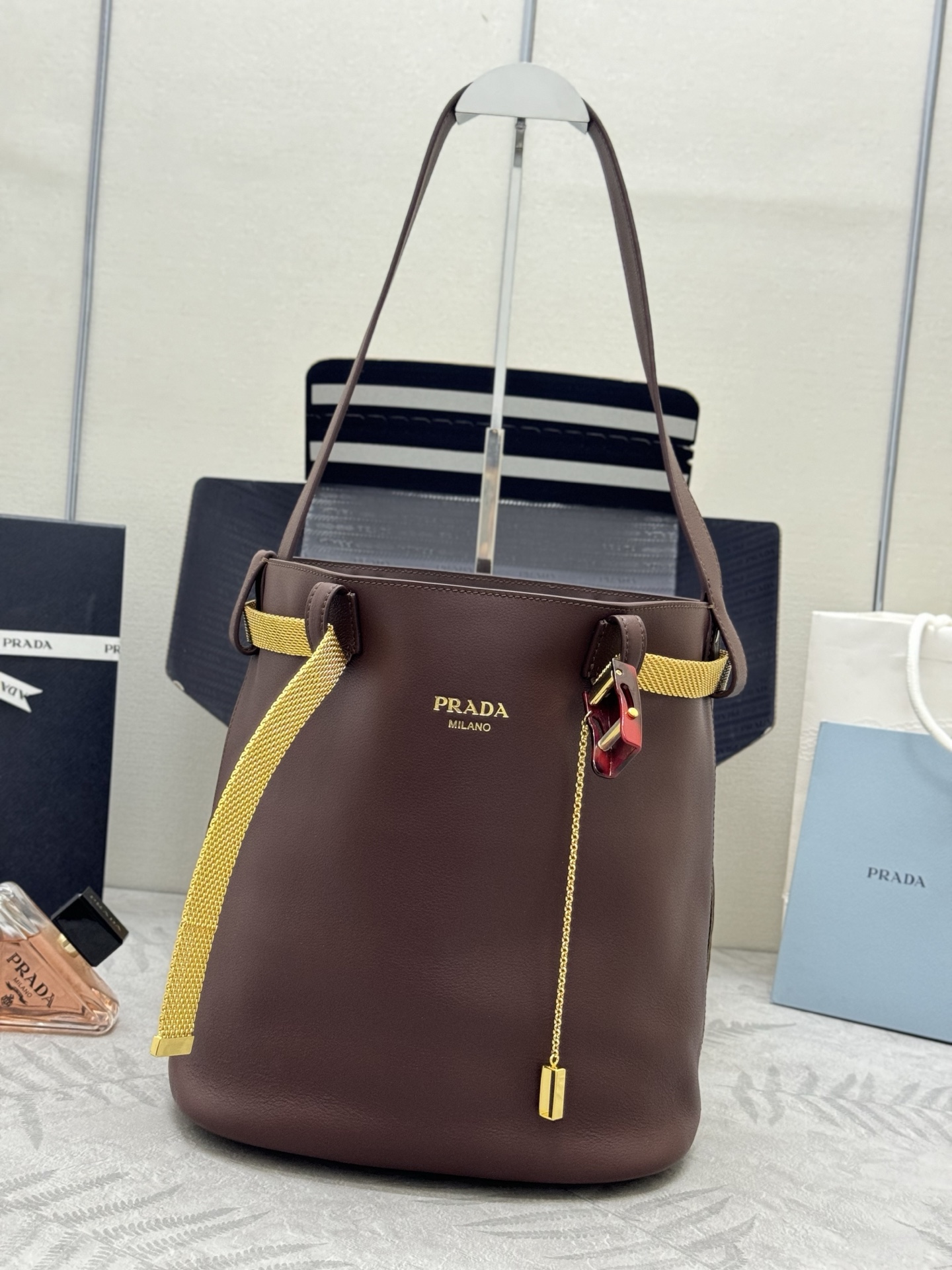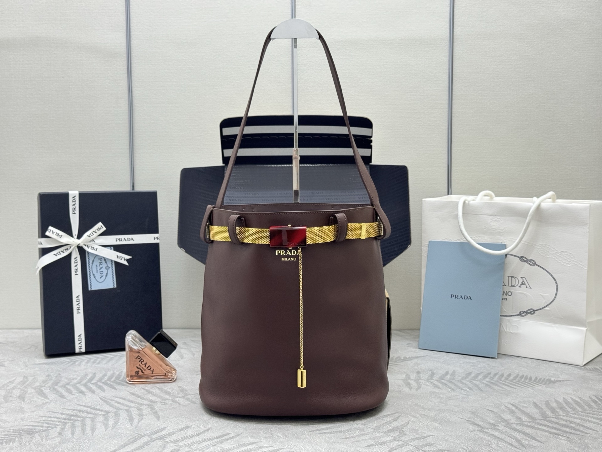 プラダ「Prada」 クワイエットレザー ミニバケットバッグ