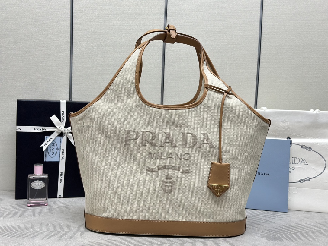 プラダ「Prada」リネンブレンド ラージトートバッグ
