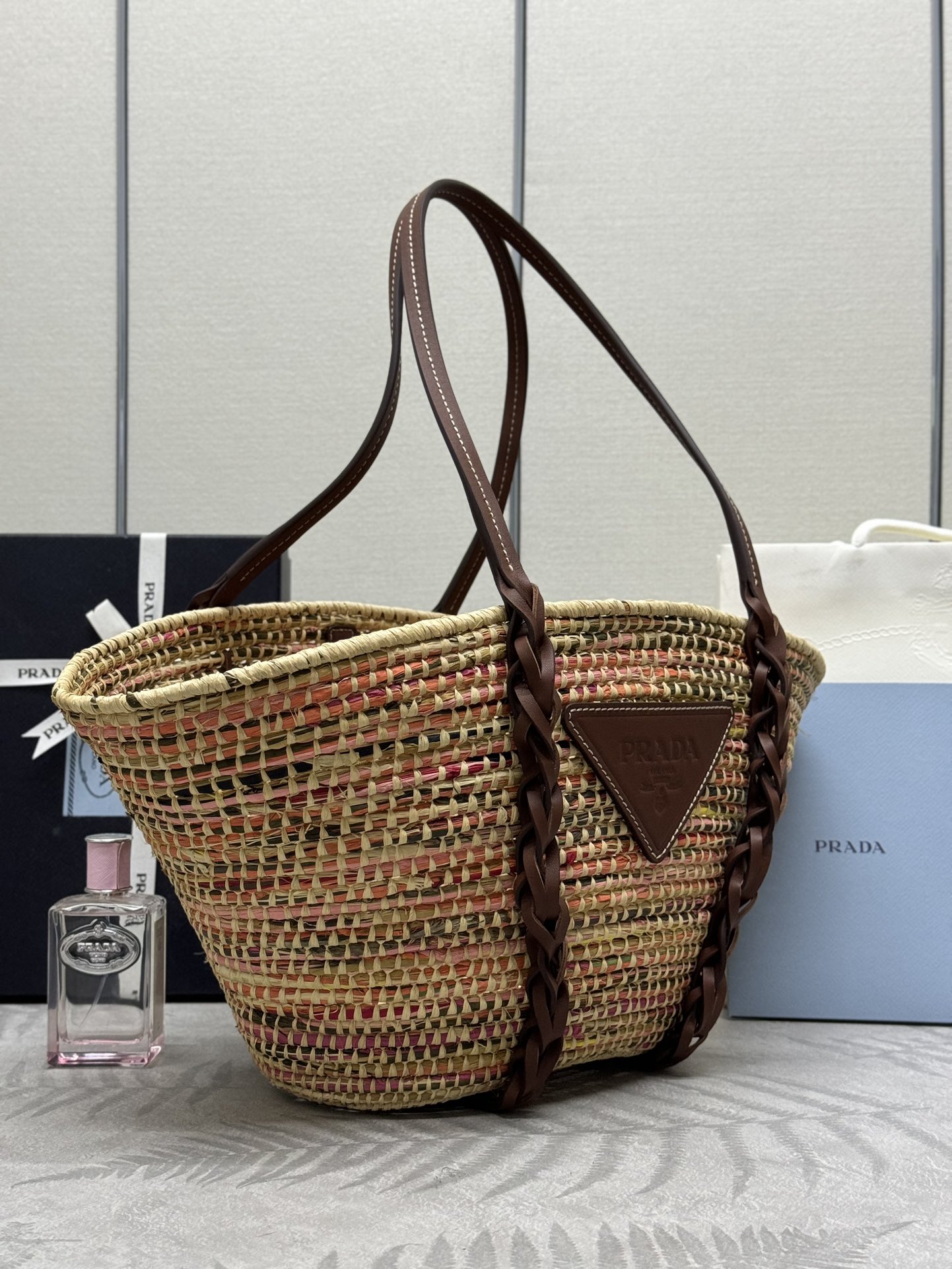 プラダ「Prada」ラフィア&レザー バスケットトート