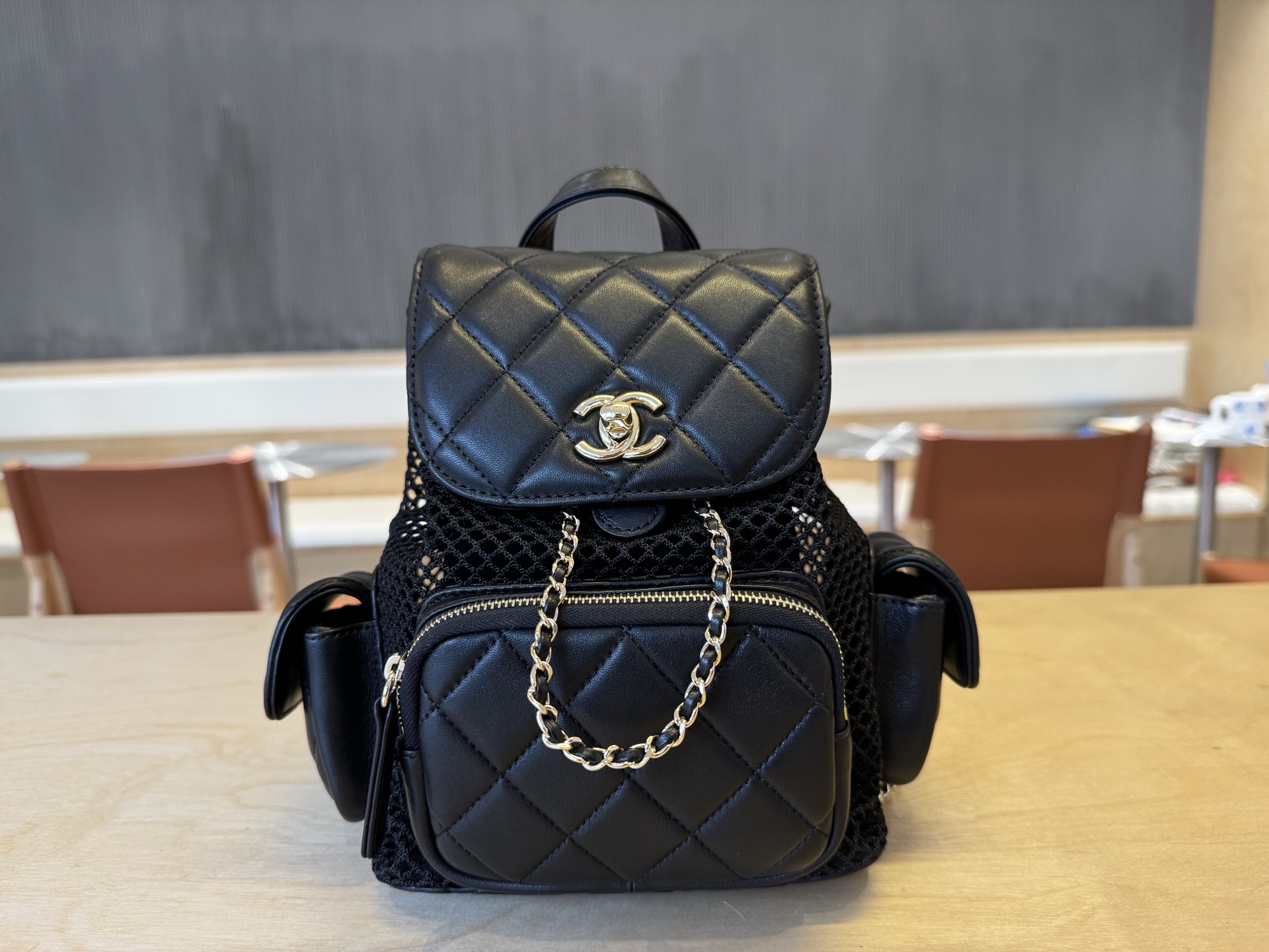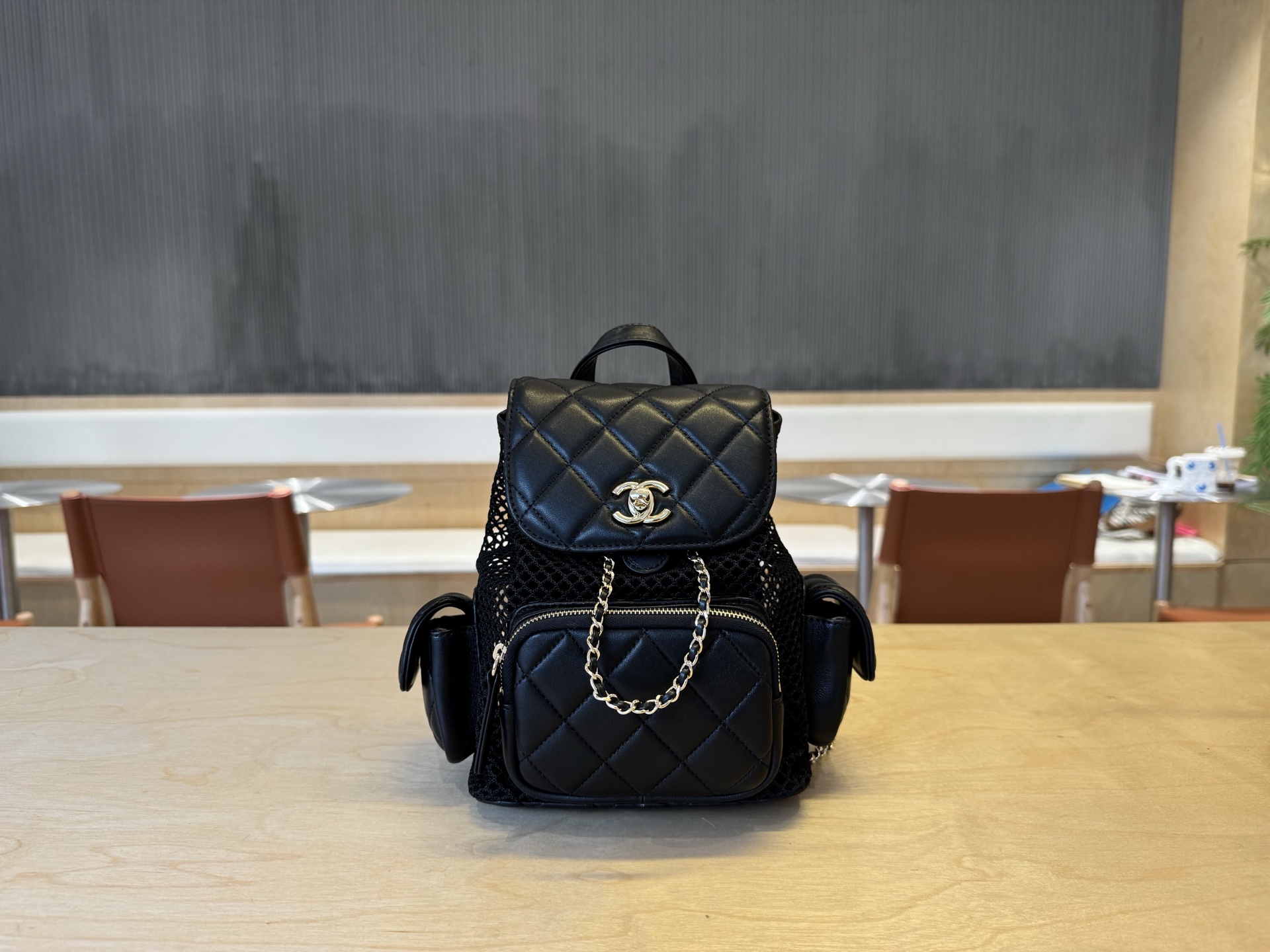 シャネル「Chanel」25S メッシュバックパック レザー リュックサック