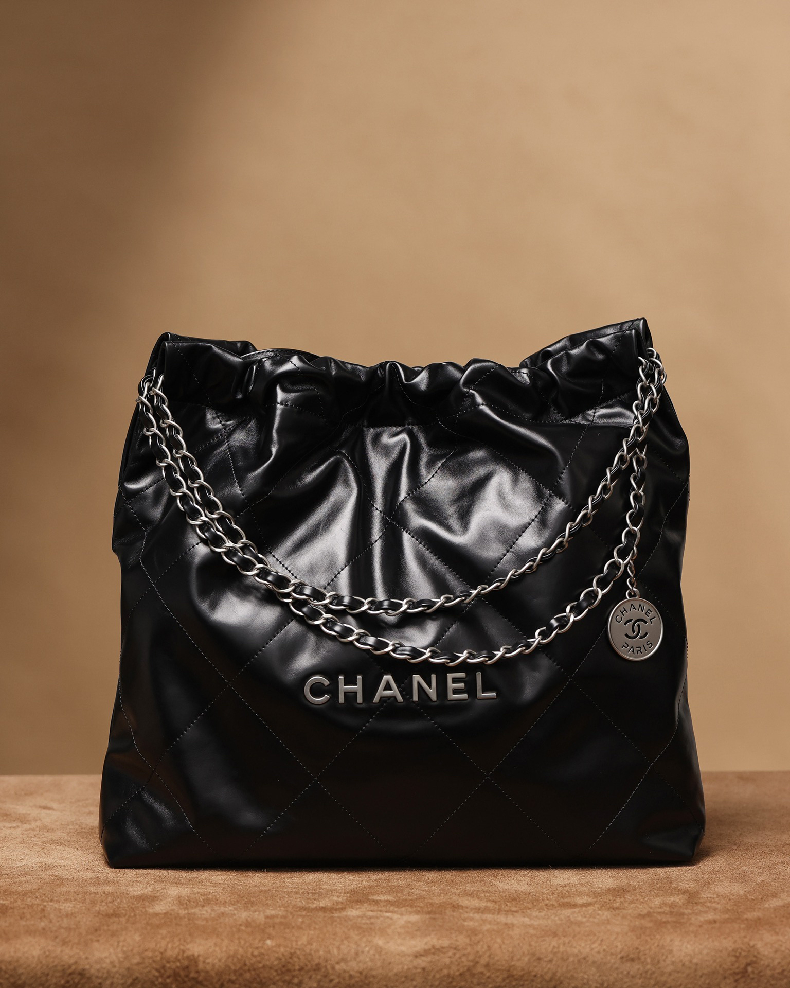 シャネル「Chanel」22バッグ シルバーロゴ ミディアムサイズ