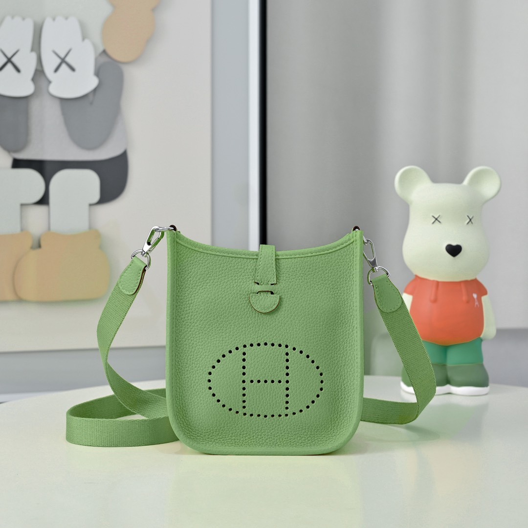 エレガントな穿孔Hロゴが特徴のコンパクトショルダーバッグ。約17x18x5.5cmのミニサイズながら、スマートフォンや財布、化粧品など日常の必需品を収納可能。TCタウリヨン牛皮革を使用し、軽量で柔らかな肌触りが魅力。付属の調節可能なショルダーストラップで、斜め掛けやショルダーとして多彩なスタイリングが楽しめる。