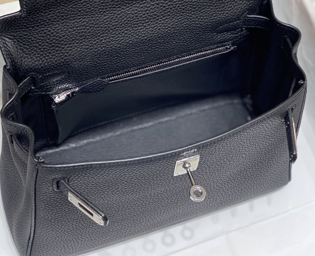 象徴的ディテール: ケリーシリーズの代名詞であるターンロックとキーケース付きのディテールが高級感を強調。