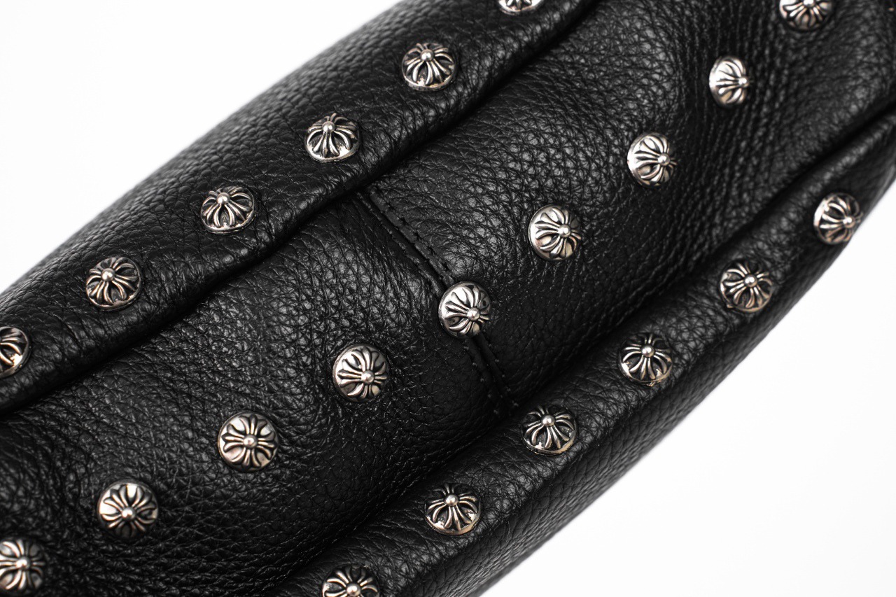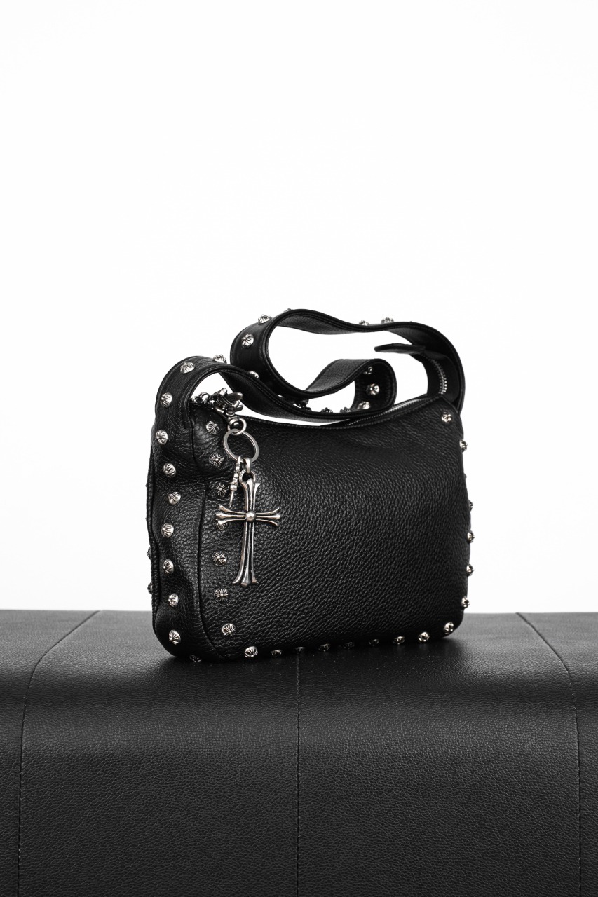 クロムハーツのアイコニックなクロススタッドデザインを施したアンダーアームバッグ。26x6x18cmのコンパクトサイズで、日常使いから特別な日まで幅広く活躍。輸入頭層牛皮の自然な風合いと、ジンク合金のヴィンテージ調金具が上質な雰囲気を演出。真空メッキ仕様の輝きが洗練された存在感を放ちます。
