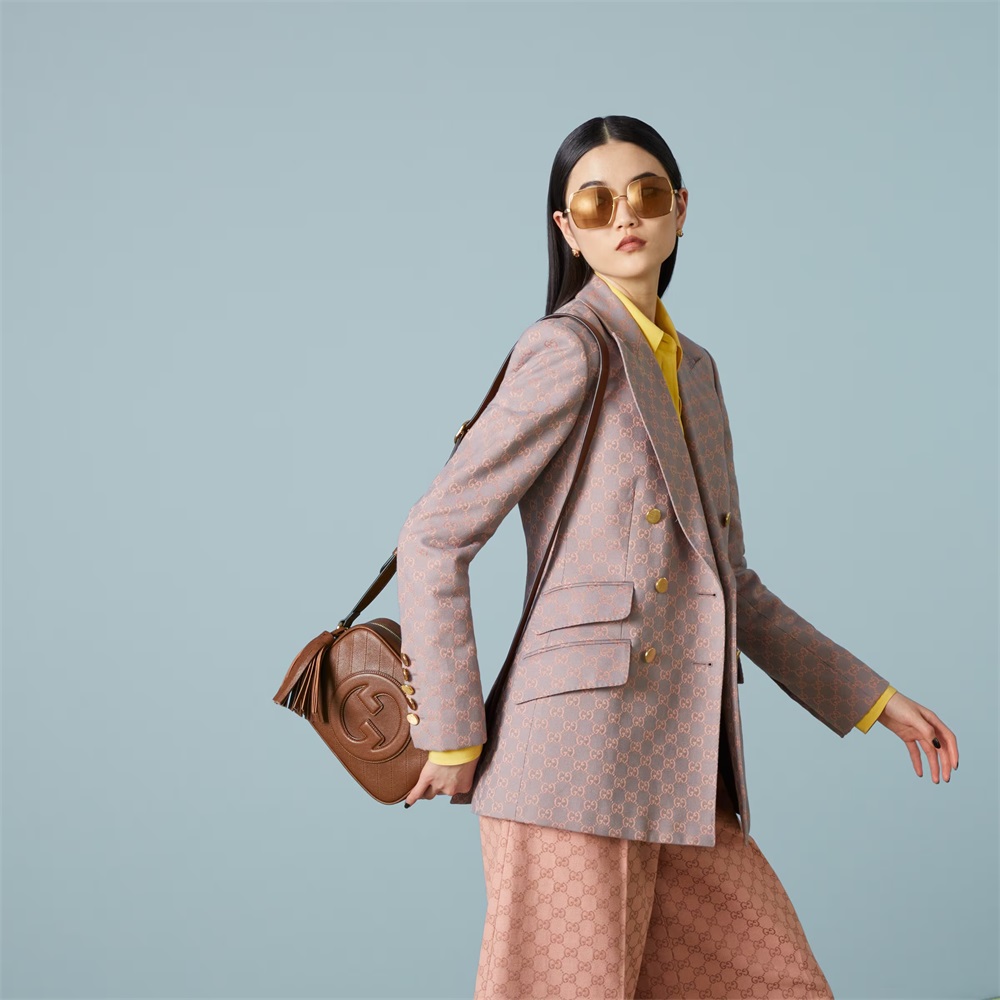 グッチのアーカイブから復刻させたラウンド インターロッキングGを特徴とする、〔グッチ ブロンディ〕ライン。シグネチャーであるこの〔グッチ ブロンディ〕ショルダーバッグやクロスボディバッグは、その象徴的なロゴをレザー パッチ ディテールでさりげなく表現しています。