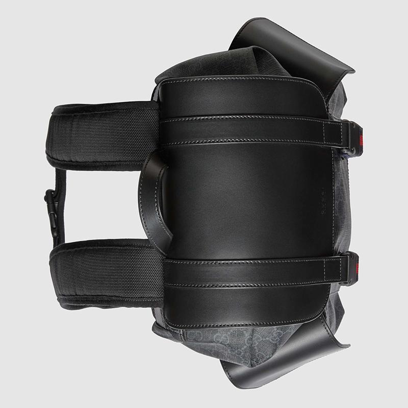 ブラックとグレーで表現されたGG パターンを、ウェブ ストラップとブラック レザー トリムが印象的に引き立てます。GGパターンがあしらわれたマイクロファイバーファブリックにコーティングを施し、GGスプリーム キャンバスよりもソフトな質感に仕上げたソフト GGスプリームを使用しています。