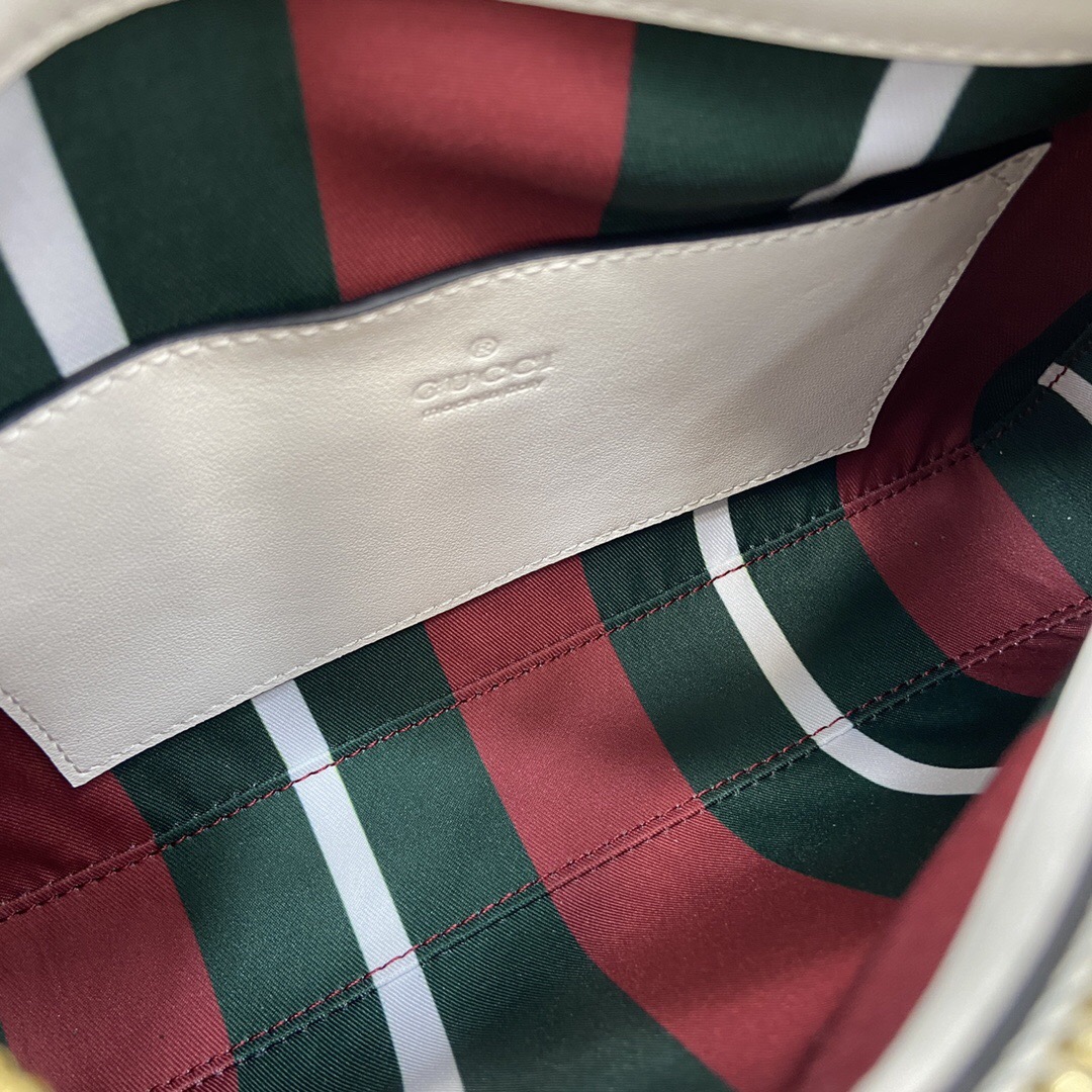 このエレガントなショルダーバッグは、柔らかなマットレザーと特徴的なダブルGハードウェアが魅力です。クリームホワイトの落ち着いたカラーリングで、春夏のワードローブに華やかさを添えます。サイズは縦26cmx横16cmxマチ7cmのコンパクト設計で、日常使いに最適な収納力を持ちます。