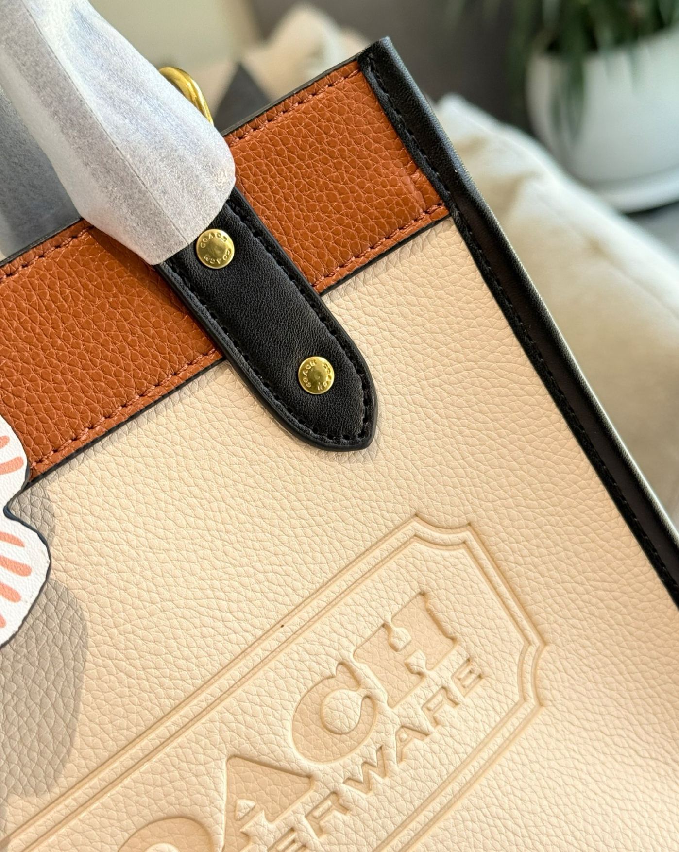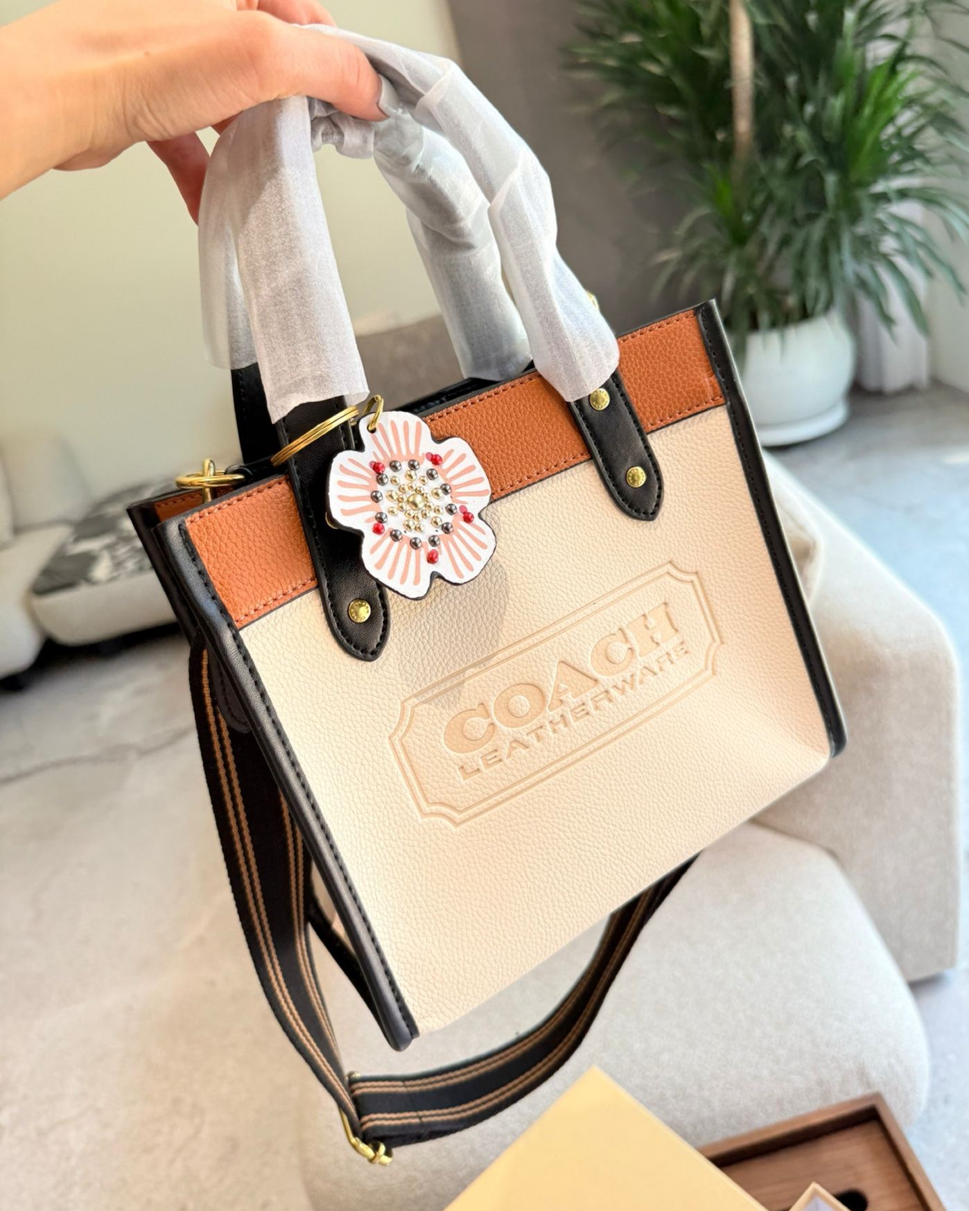 COACHの「Field 22」トートバッグは、クラシックな馬車モチーフのプリントと丈夫なコーチドキャンバスで作られた、日常使いに最適なデザイン。22cmx21cmx12cmのコンパクトサイズながら、スマホや財布、化粧ポーチをすっきり収納。マグネット式のフラップ開閉と内側ジッパーポケットで安全性を確保。取り外し可能なショルダーストラップ(約62cm)付きで、手提げ・肩掛けの2WAYスタイルに対応。ビジネスからカジュアルまで幅広く活躍します。