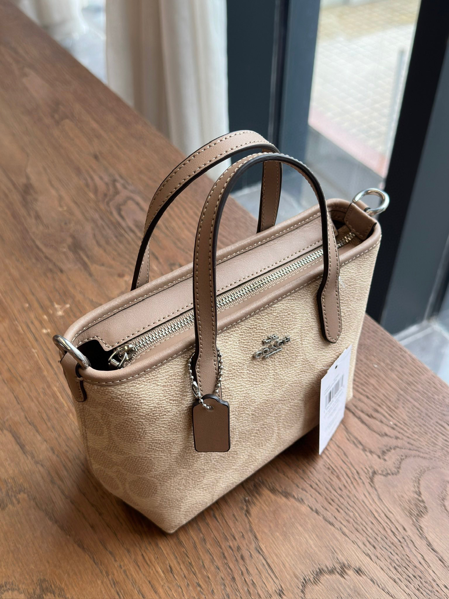 COACHのアイコニックなCモノグラムプリントが、上品で洗練された印象を与えます。